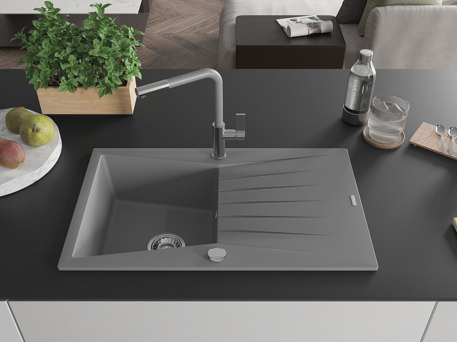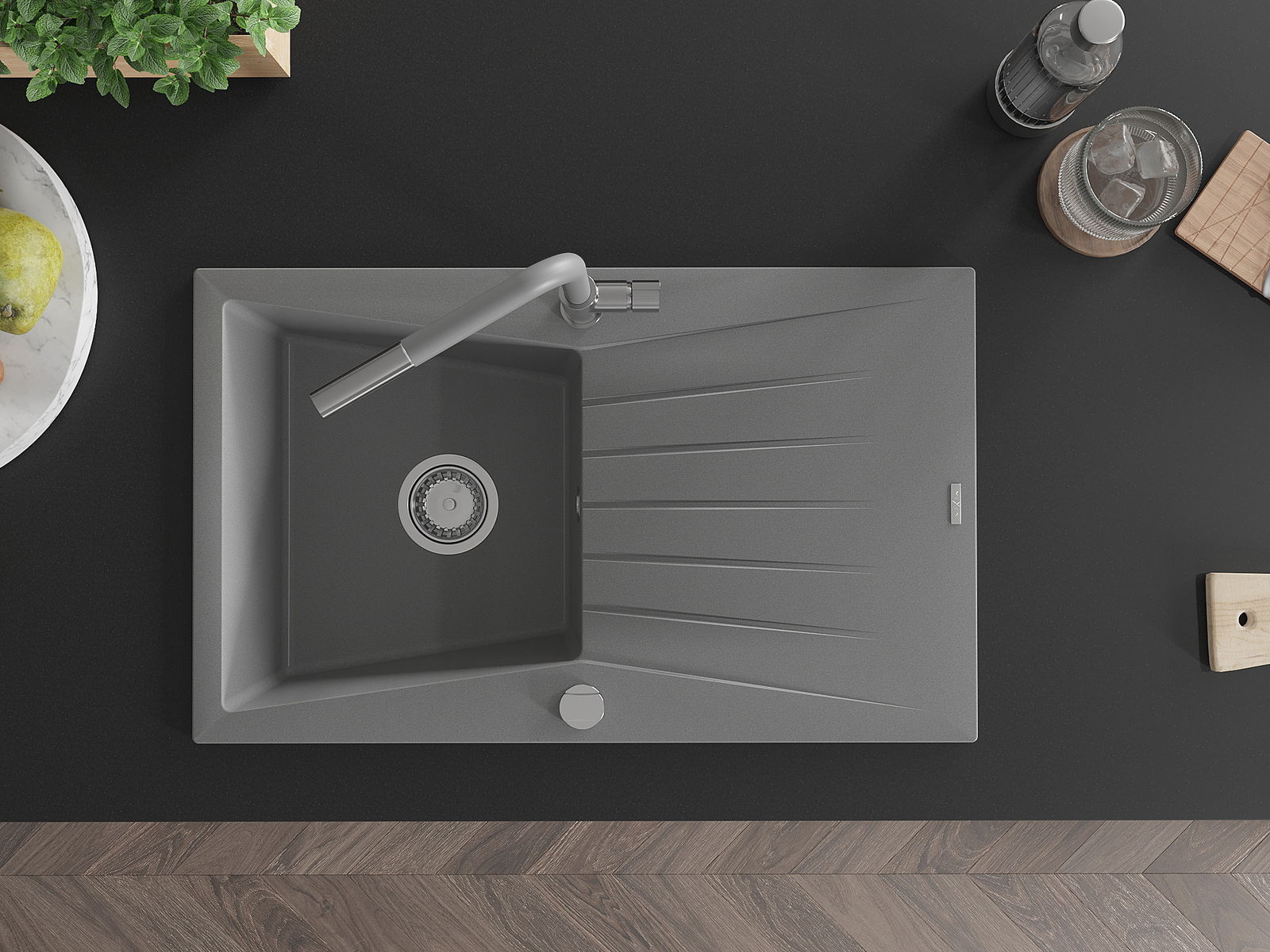 O lava-louças foi feito de granito de alta qualidade. É um complemento elegante e, acima de tudo, prático para qualquer cozinha, independentemente do seu estilo. A alta qualidade e durabilidade do granito garantem uma utilização de muitos anos.