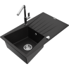 Mexen Cesar lava-louça de granito com 1 bacia com escorredor e torneira de cozinha Flora, cinza - 6514-71-670401-06