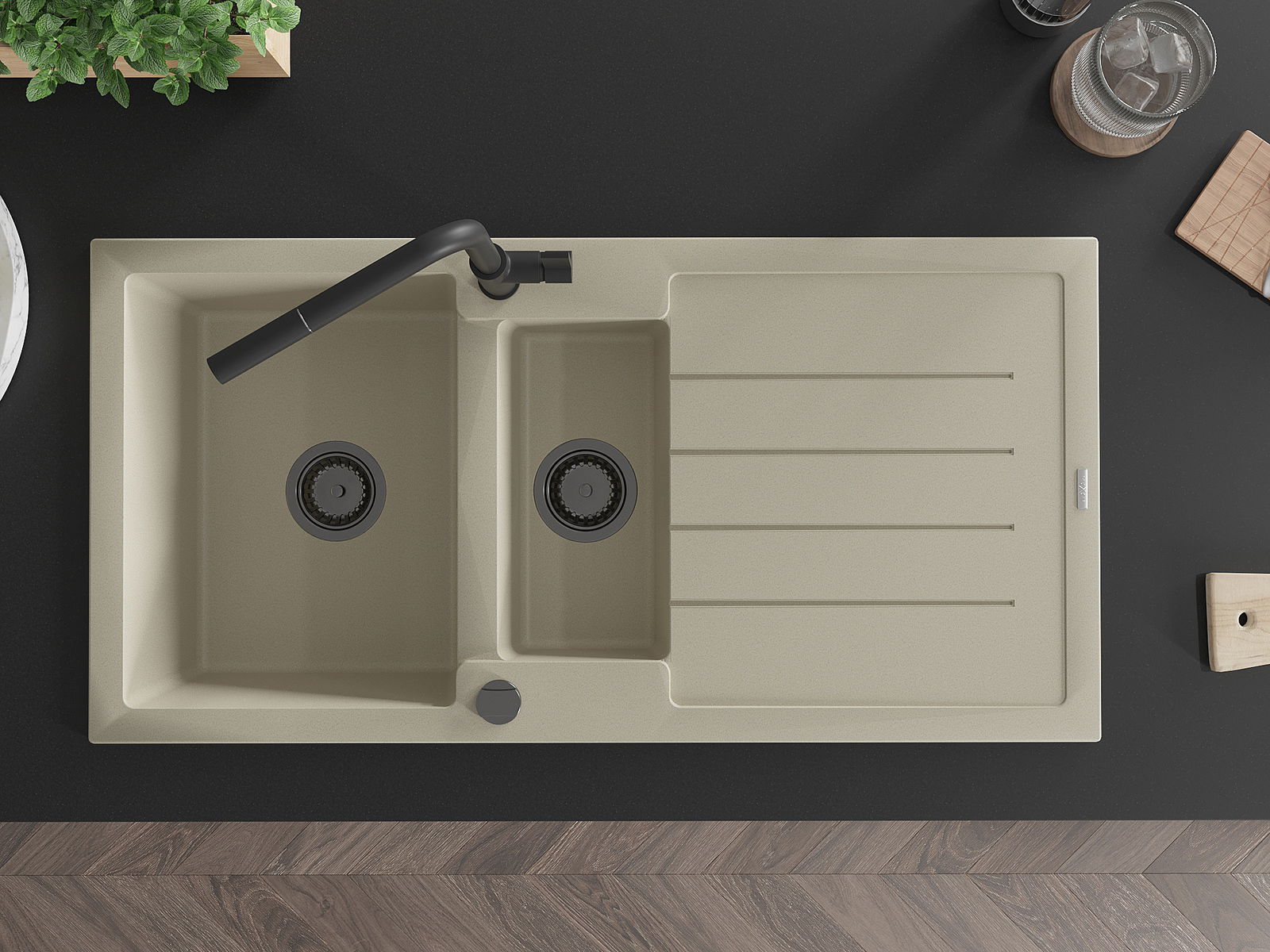 O lava-louças foi feito de granito de alta qualidade. É um complemento elegante e, acima de tudo, prático para qualquer cozinha, independentemente do seu estilo. A alta qualidade e durabilidade do granito garantem uma utilização de muitos anos.