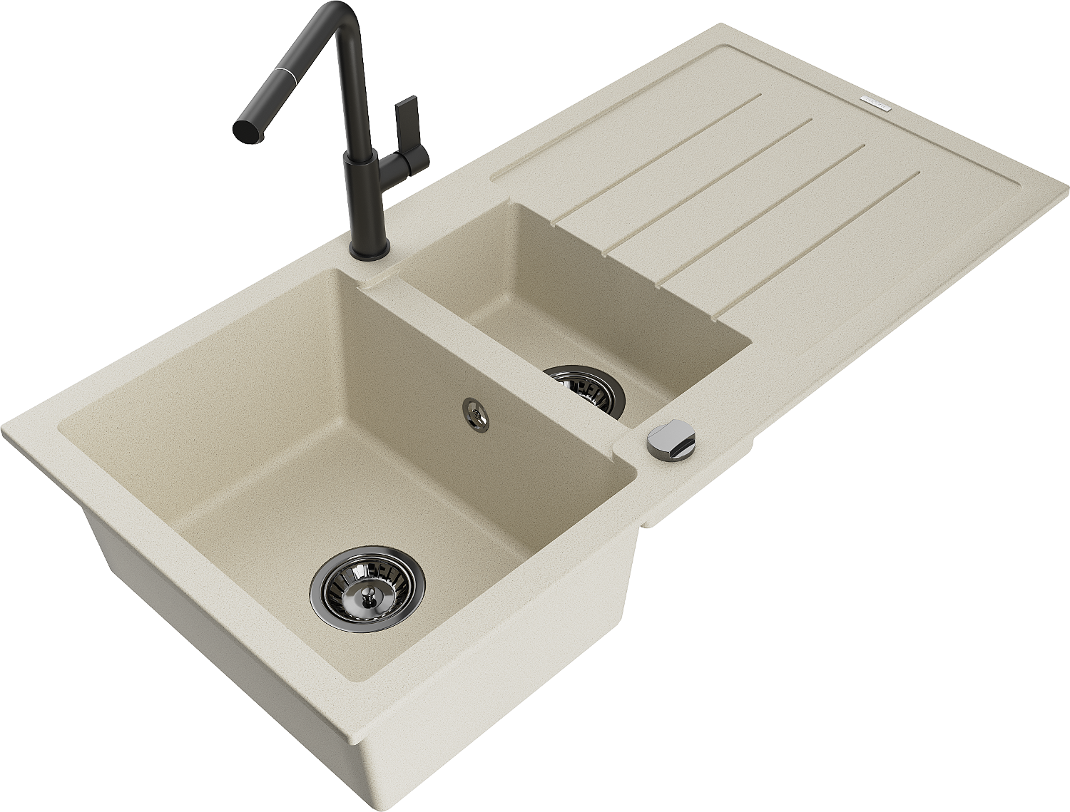 Mexen Andres lava-louça de granito 1,5-cubas com escorredor e torneira de cozinha Flora, bege - 6515-69-670401-70-B