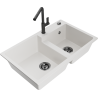 Mexen Tomas lava-loiça de granito de 2 cubas com torneira de cozinha Flora, cinza - 6516-71-670401-70-B
