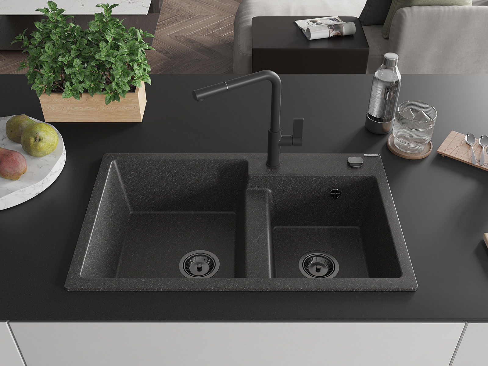 O lava-louças foi feito de granito de alta qualidade. É um complemento elegante e, acima de tudo, prático para qualquer cozinha, independentemente do seu estilo. A alta qualidade e durabilidade do granito garantem uma utilização de muitos anos.