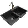 Mexen Tomas lava-louça em granito de 2 cubas com torneira de cozinha Flora, preto salpicado - 6516-76-670401-75-B