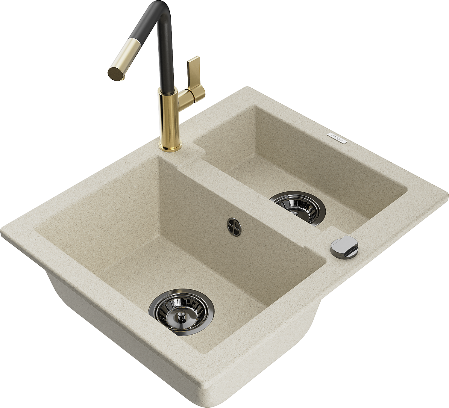 Mexen Carlos lava-loiça de granito com 1,5 compartimentos com torneira de cozinha Flora, bege - 6518-69-670401-57-B