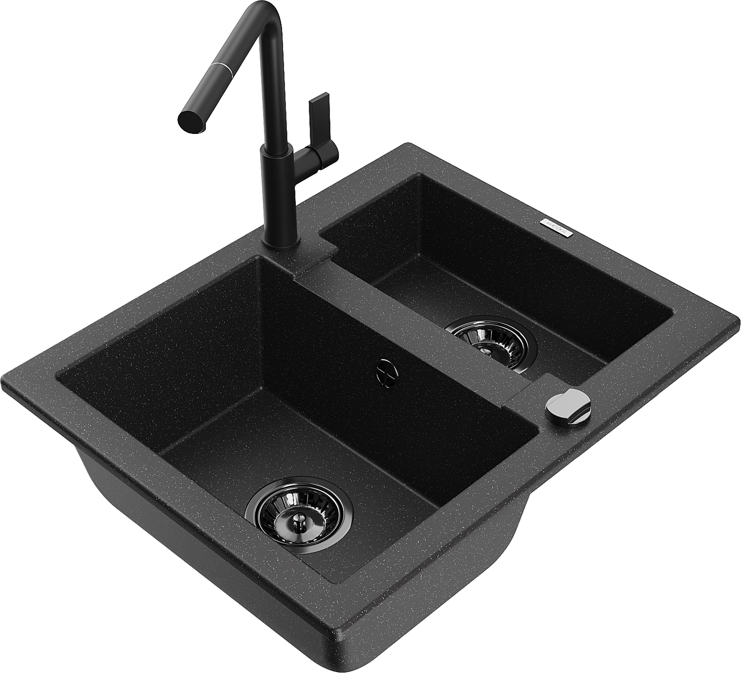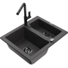 Mexen Carlos lava-louça de granito 1,5-com cubas com torneira de cozinha Flora, preto/prateado metálico - 6518-73-670401-70-B