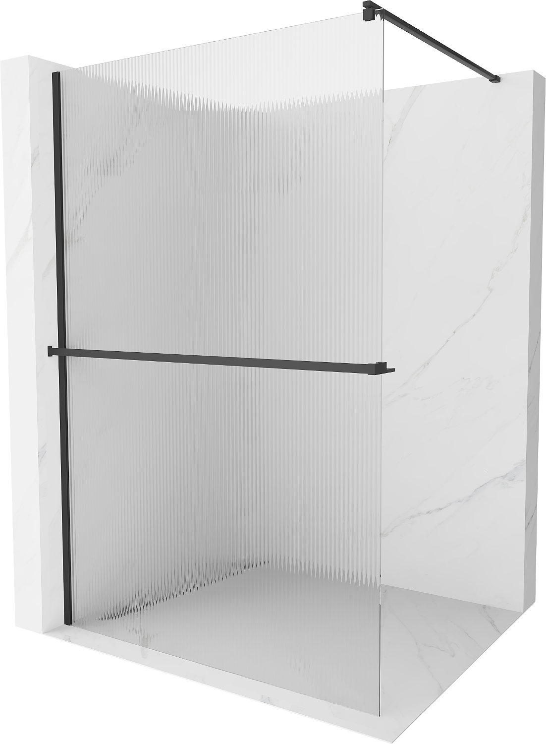 Mexen Kioto+ parede de duche com prateleira Walk-in 140 x 200 cm, riscas, preta - 800-140-121-70-09
