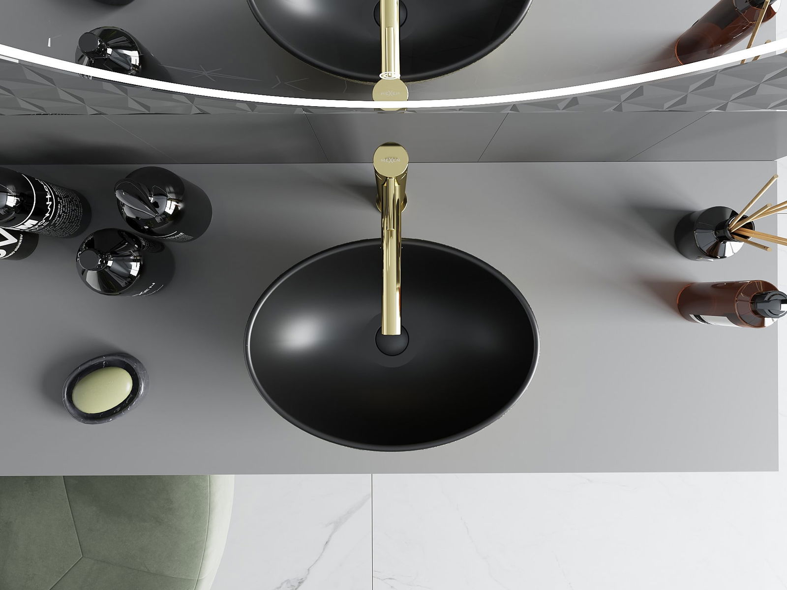 A superfície mate da cerâmica destaca perfeitamente o caráter da cor do produto, conferindo-lhe um acabamento único e marcante. A estrutura subtil da cerâmica mate traz elegância à casa de banho, criando um espaço estético.