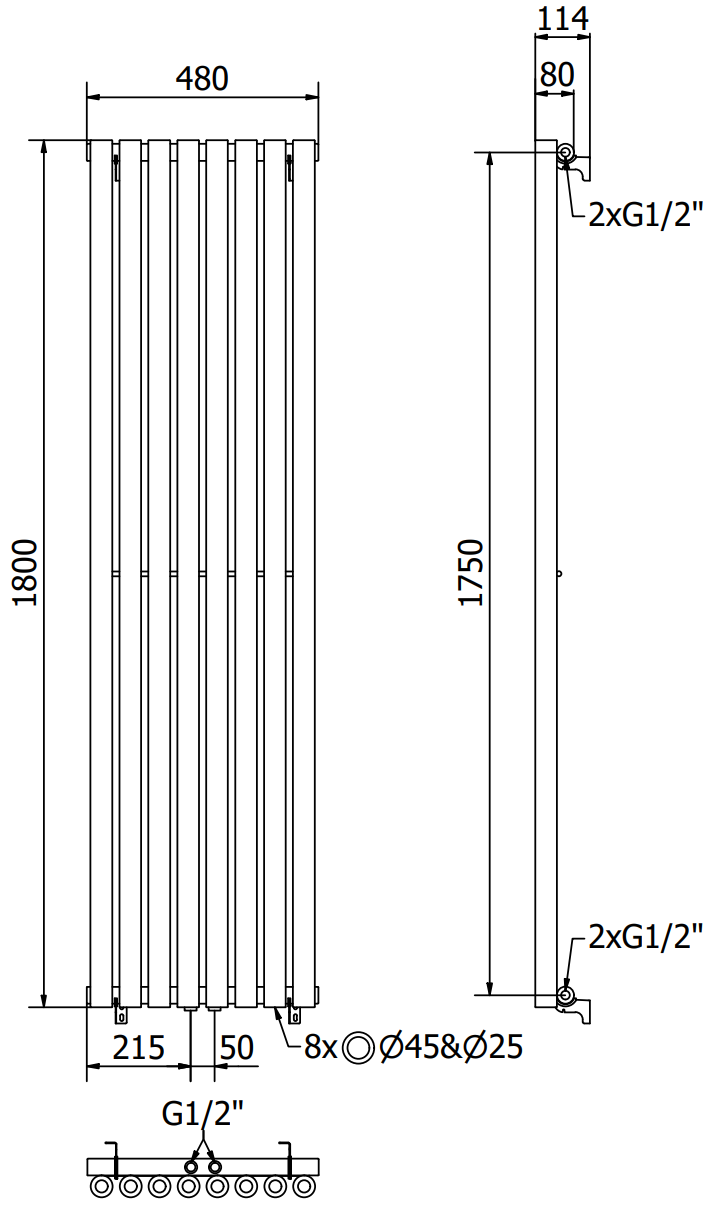 - 4xG ½″ na parte superior e inferior à direita ou esquerda