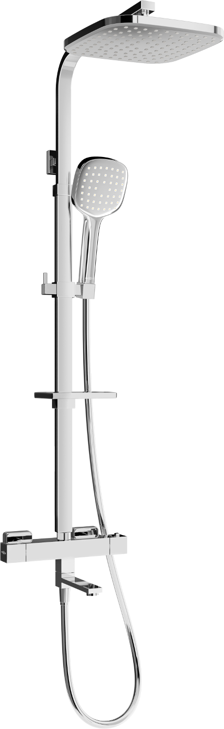 O termóstato permite definir a temperatura da água, que manterá durante o banho. É uma solução inovadora, que não só oferece conforto, mas também evita alterações bruscas de temperatura e queimaduras desagradáveis.
