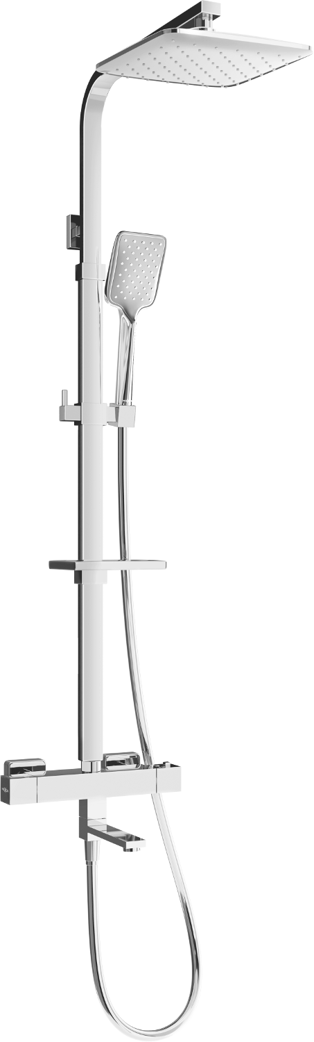 O termóstato permite definir a temperatura da água, que manterá durante o banho. É uma solução inovadora, que não só oferece conforto, mas também evita alterações bruscas de temperatura e queimaduras desagradáveis.
