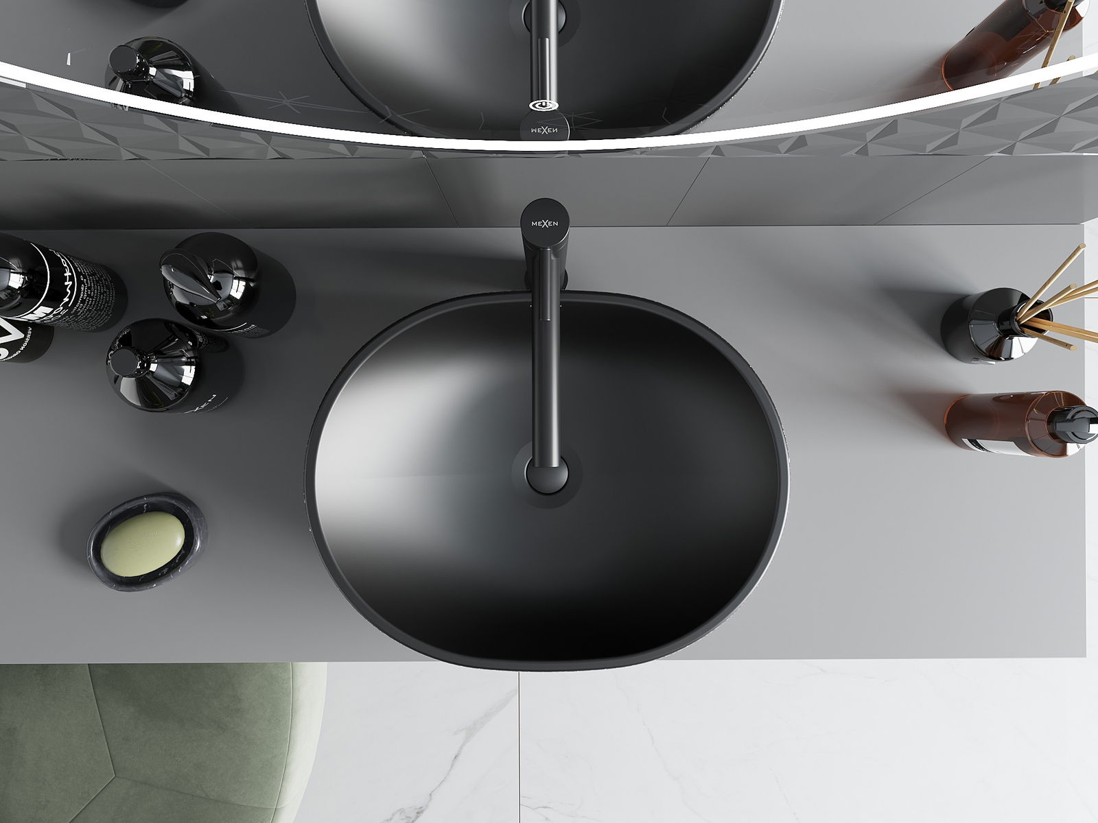 Mexen Viki lavabo de bancada 48 x 35 cm, preto mate/prateado padrão escama - 21054872