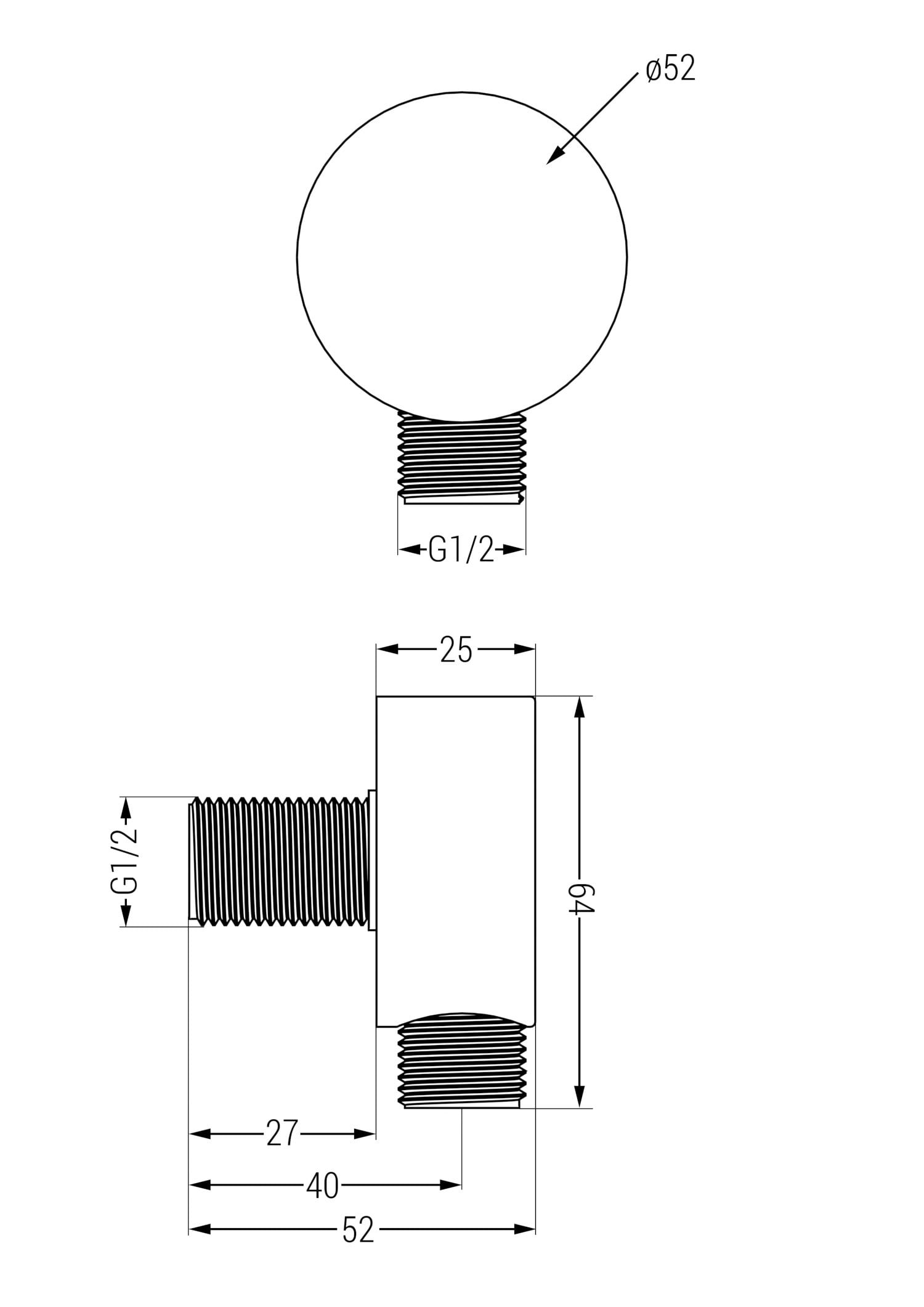 Dimensões da roseta: Ø52 mm