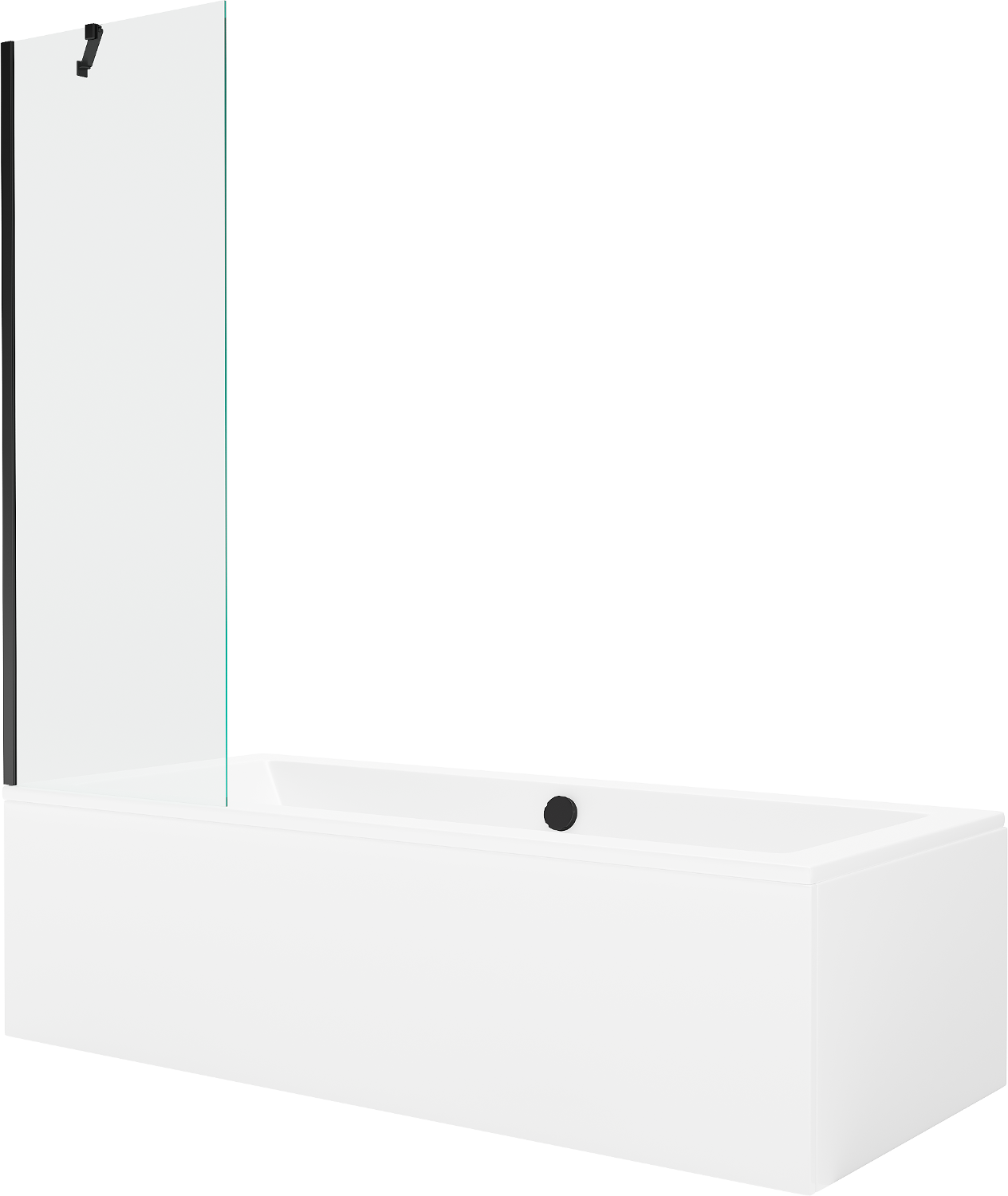 Mexen Cube banheira retangular 170 x 80 cm com revestimento e divisória de 1 folha 60 cm, transparente, preto