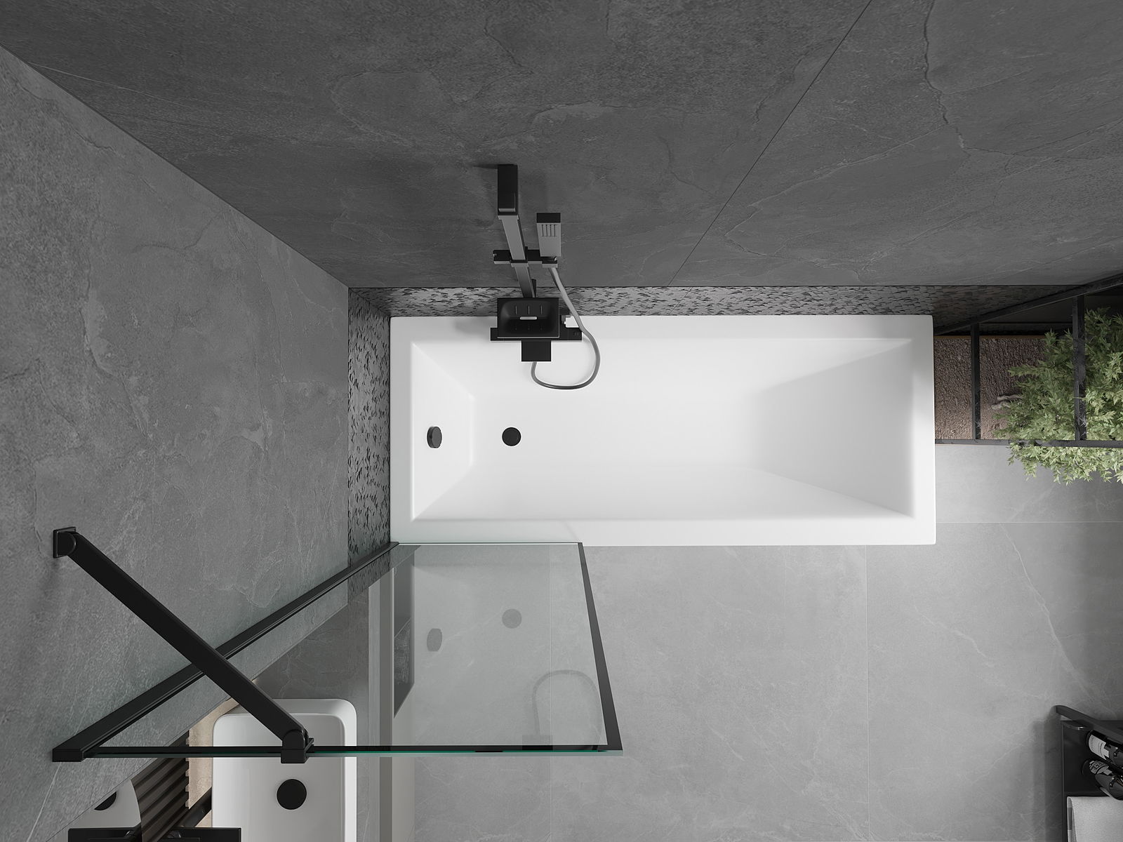 Mexen Cubik banheira retangular 150 x 70 cm com revestimento e para-brisa de 1 folha 60 cm, padrão preto - 550315070X9506007070