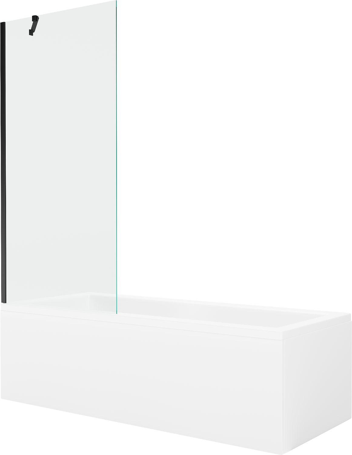 Mexen Cubik banheira retangular 160 x 70 cm com painel e divisória de 1 folha 80 cm, transparente, preto - 550316070X9508000070
