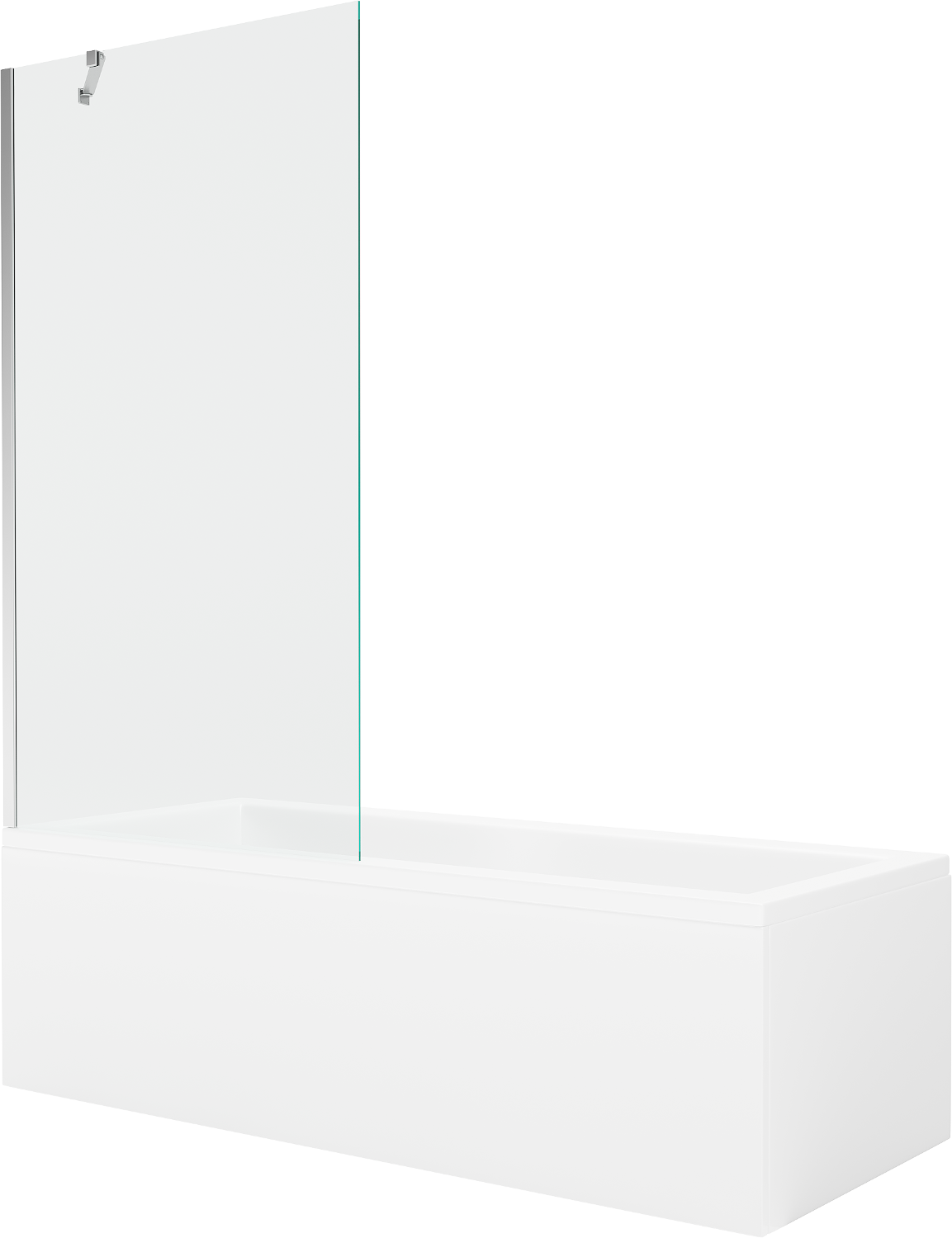 Mexen Cubik banheira retangular 170 x 70 cm com painel e para-água de 1 folha 90 cm, transparente, cromado