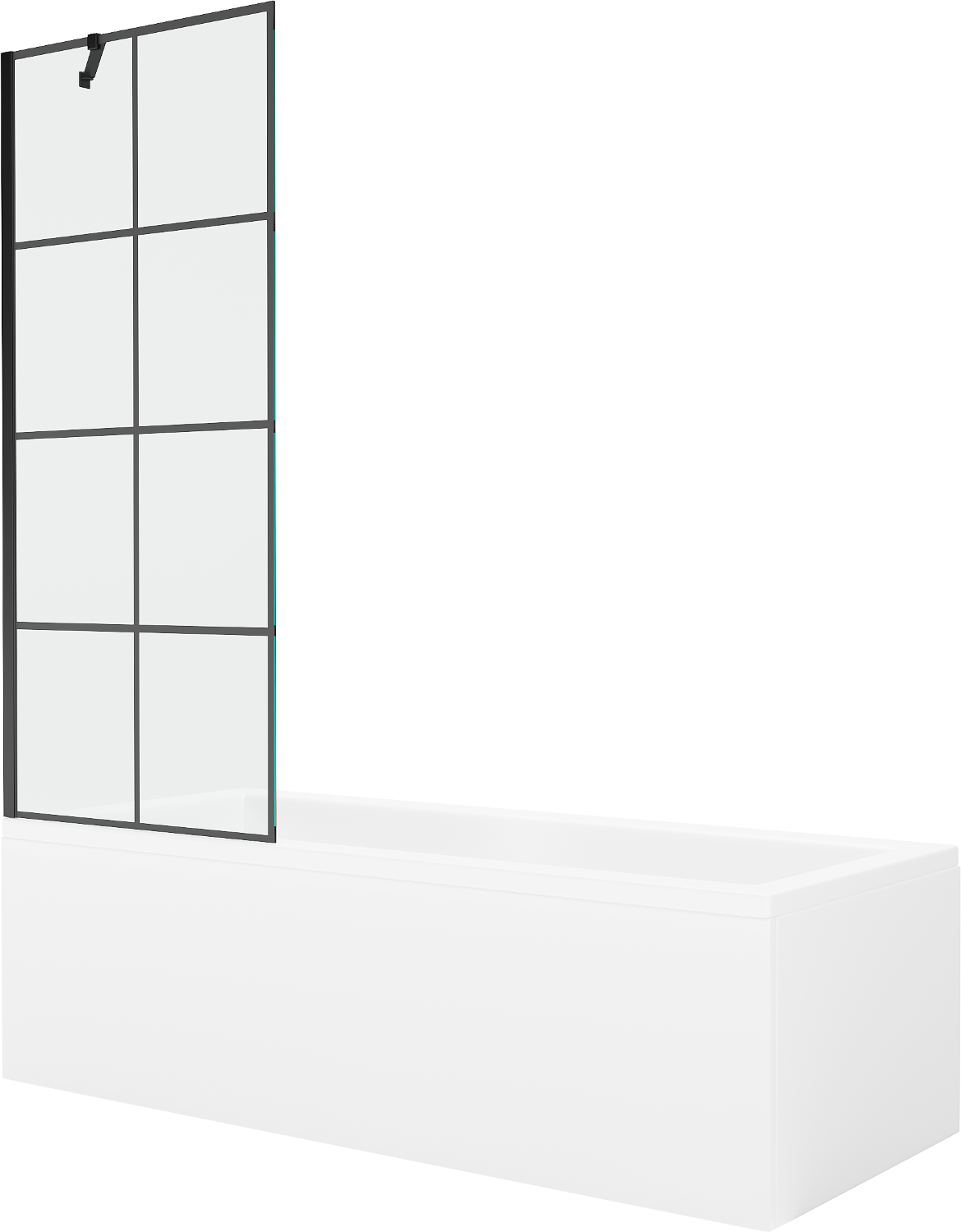 Mexen Cubik banheira retangular 170 x 70 cm com painel e divisória de 1 asa 70 cm, padrão preto - 550317070X9507007077