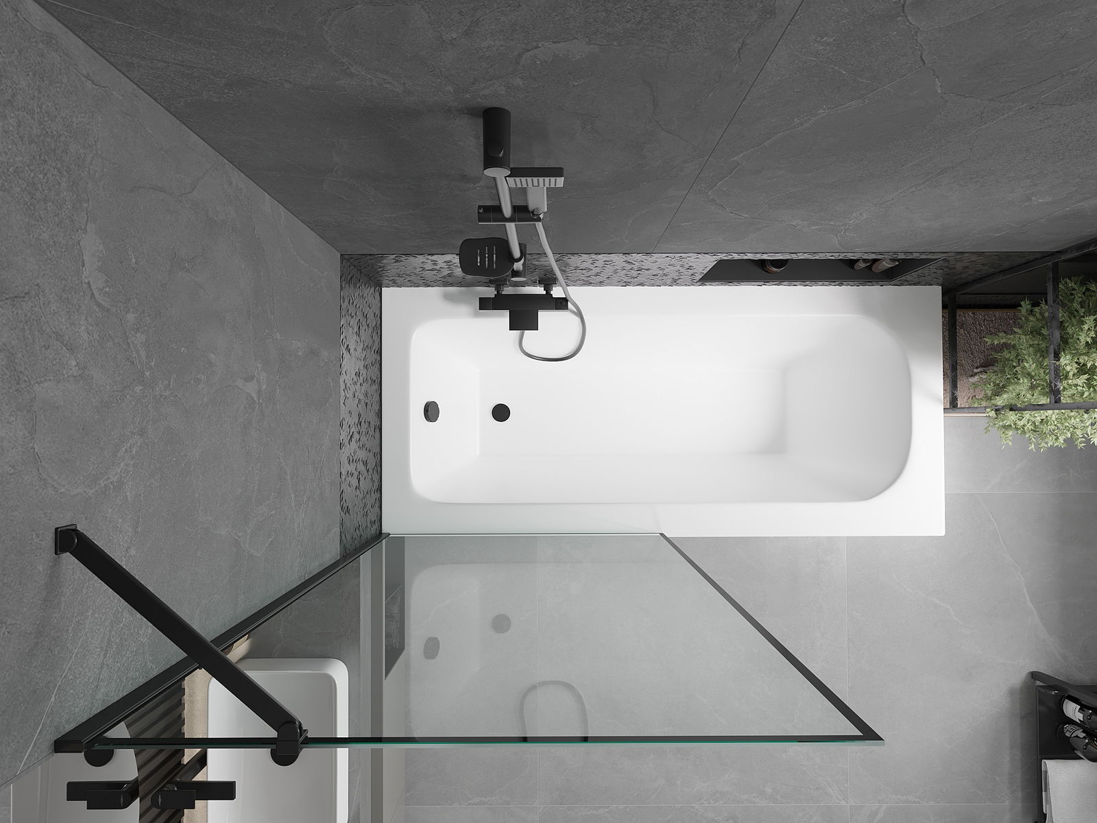 Proteção eficaz contra o derramamento de água durante o banho. O parapeito possui vedações que se ajustam perfeitamente à superfície do vidro e à borda da banheira. Solução funcional que garante segurança e fácil manutenção da limpeza.