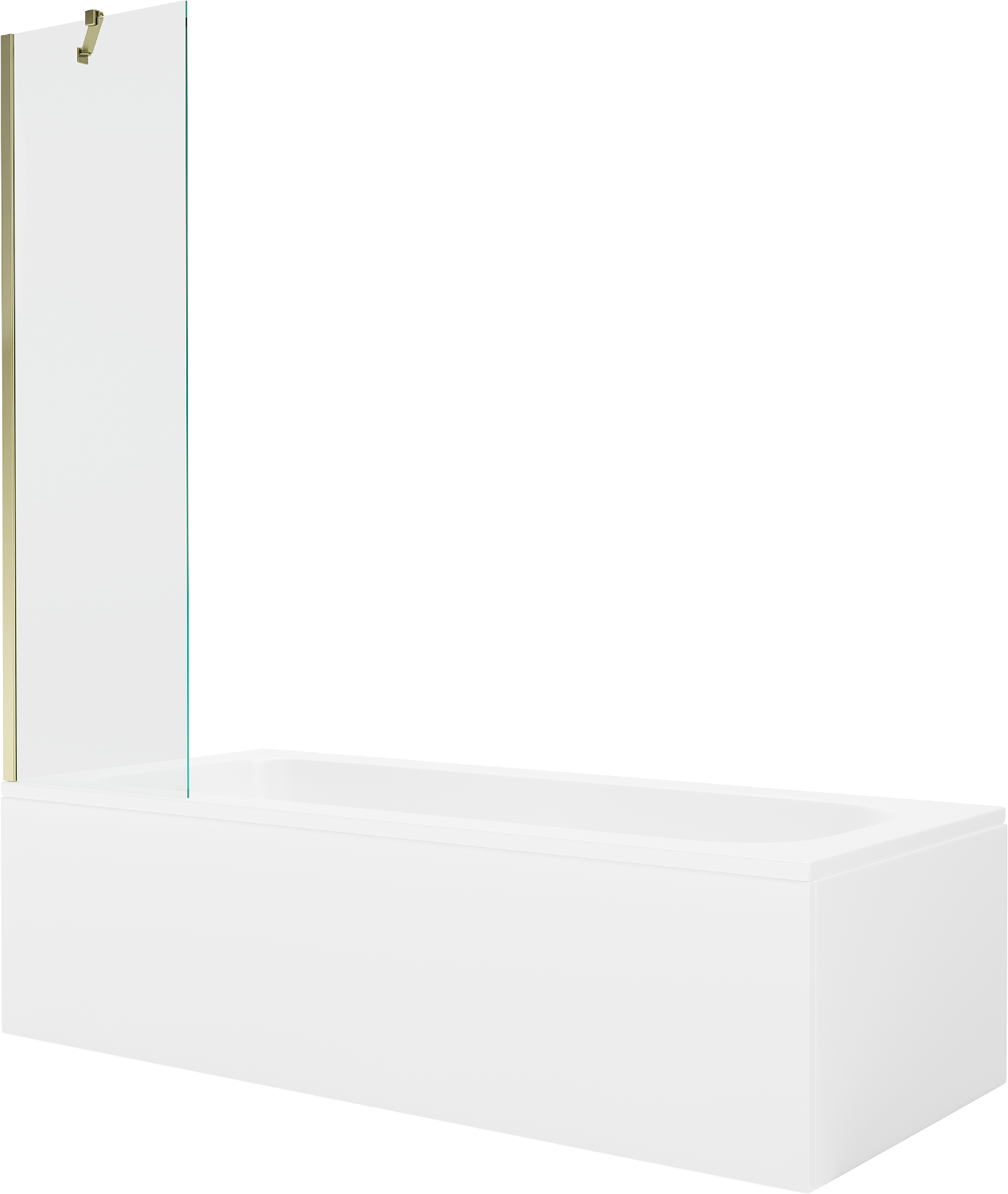 Mexen Vega banheira retangular 180 x 80 cm com revestimento e painel de vidro de 1 folha 50 cm, transparente, dourado