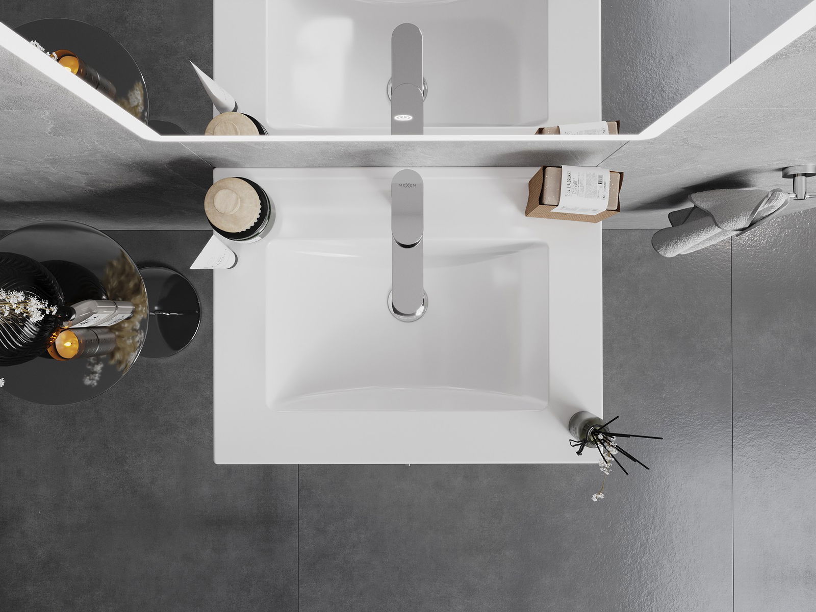 O lavatório possui uma abertura onde podemos instalar uma torneira. Isso permite economizar espaço valioso na casa de banho e realçar a sua estética. Esta solução também facilita a manutenção da limpeza ao redor do lavatório.