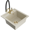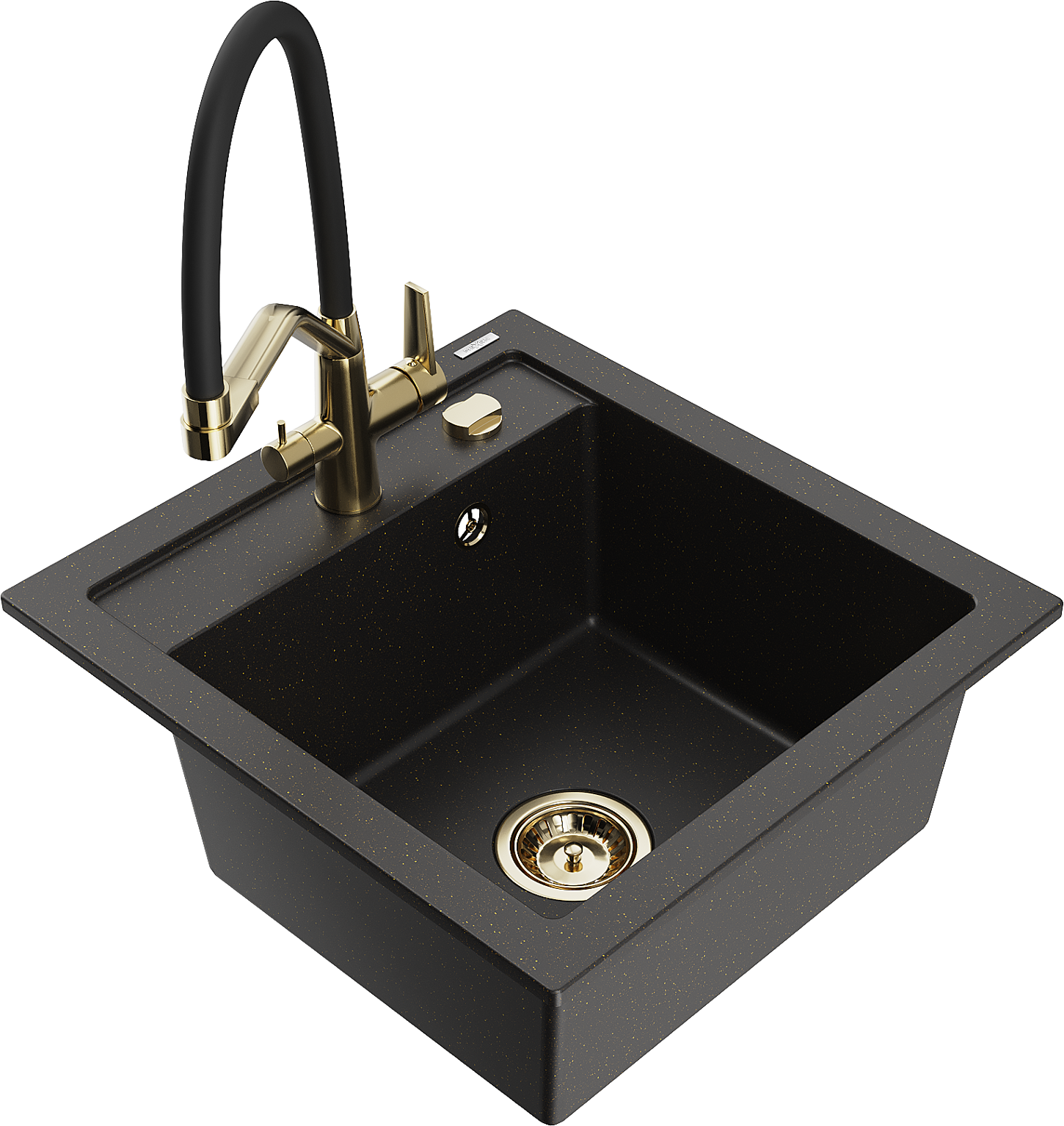 Mexen Vito lava-loiça de granito de 1 cuba com torneira de cozinha Duo, preto/dourado metálico - 6503-75-671701-57-G