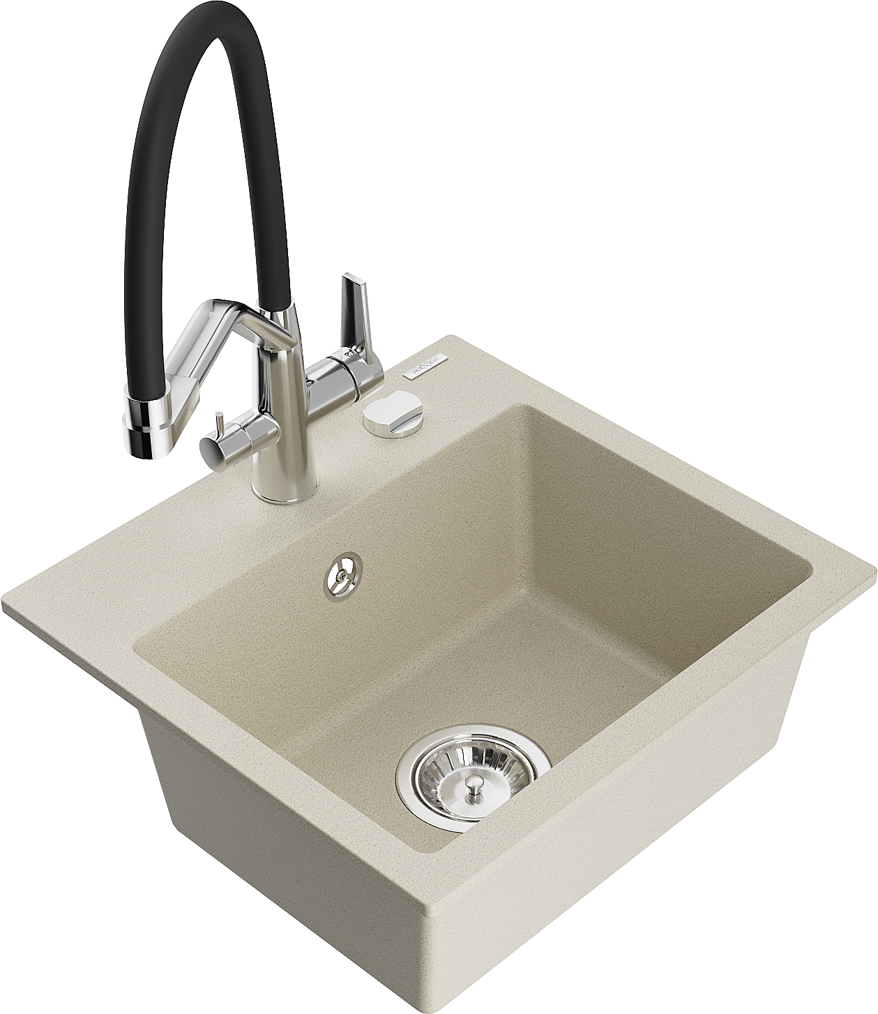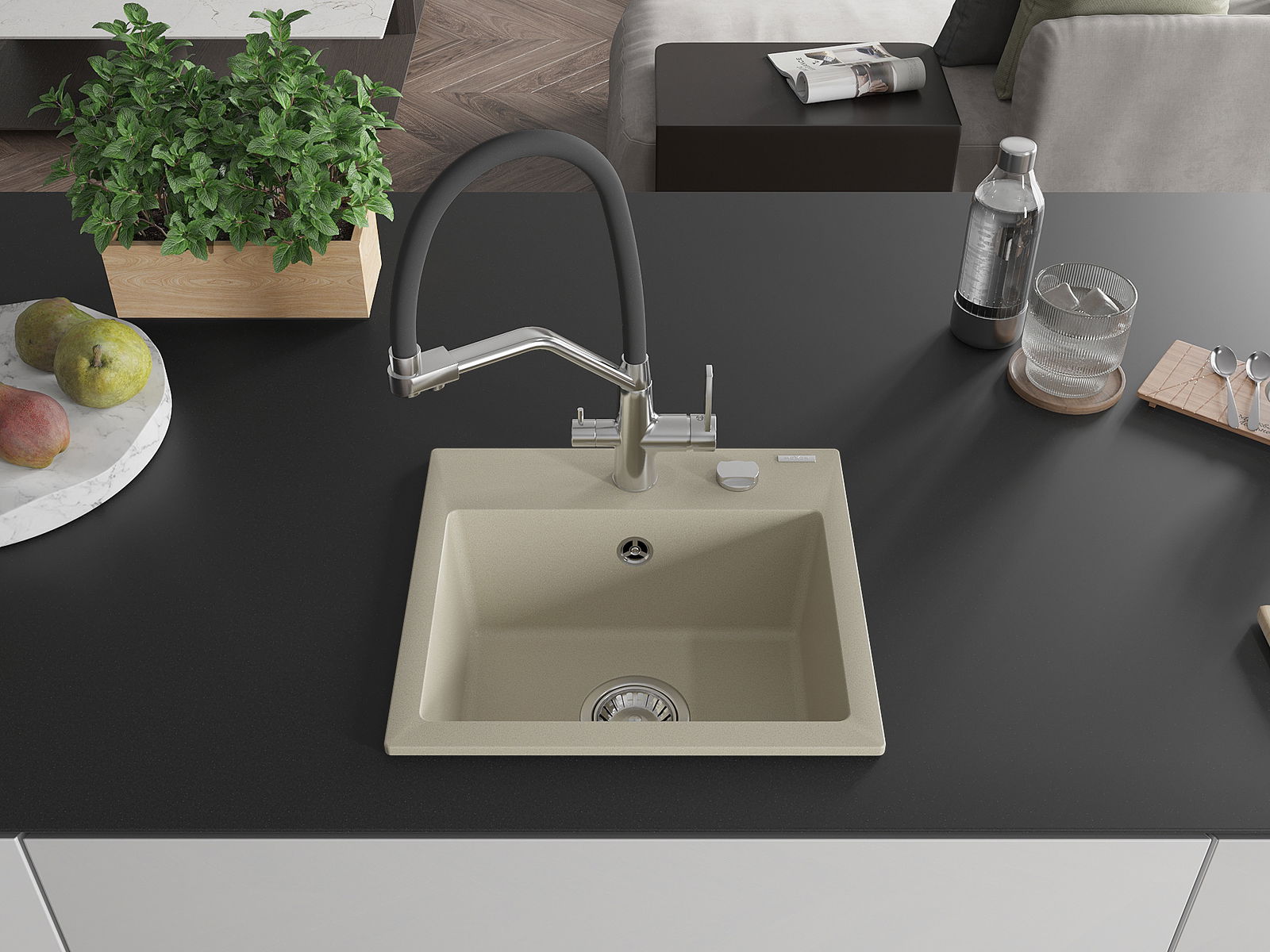 Mexen Milo lava-loiça de granito com 1 cuba com torneira de cozinha Duo, bege - 6505-69-671701-07