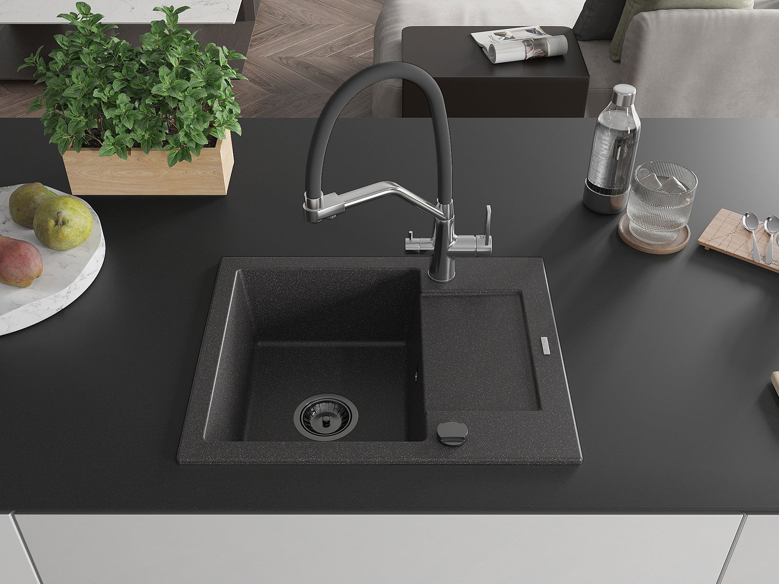 O lava-louças foi feito de granito de alta qualidade. É um complemento elegante e, acima de tudo, prático para qualquer cozinha, independentemente do seu estilo. A alta qualidade e durabilidade do granito garantem uma utilização de muitos anos.