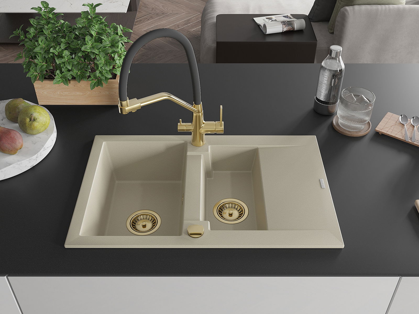 O lava-louças foi feito de granito de alta qualidade. É um complemento elegante e, acima de tudo, prático para qualquer cozinha, independentemente do seu estilo. A alta qualidade e durabilidade do granito garantem uma utilização de muitos anos.