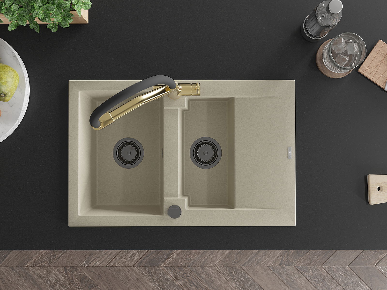 Mexen Gaspar lava-loiça em granito de 1,5 compartimento com escorredor e misturadora Duo, bege - 6507-69-671701-57-B