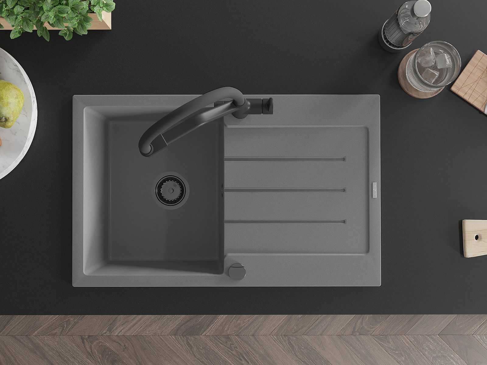 Mexen Bruno lava-louça de granito de uma cuba com escorredor e misturadora Duo, cinza - 6513-71-671701-70-B