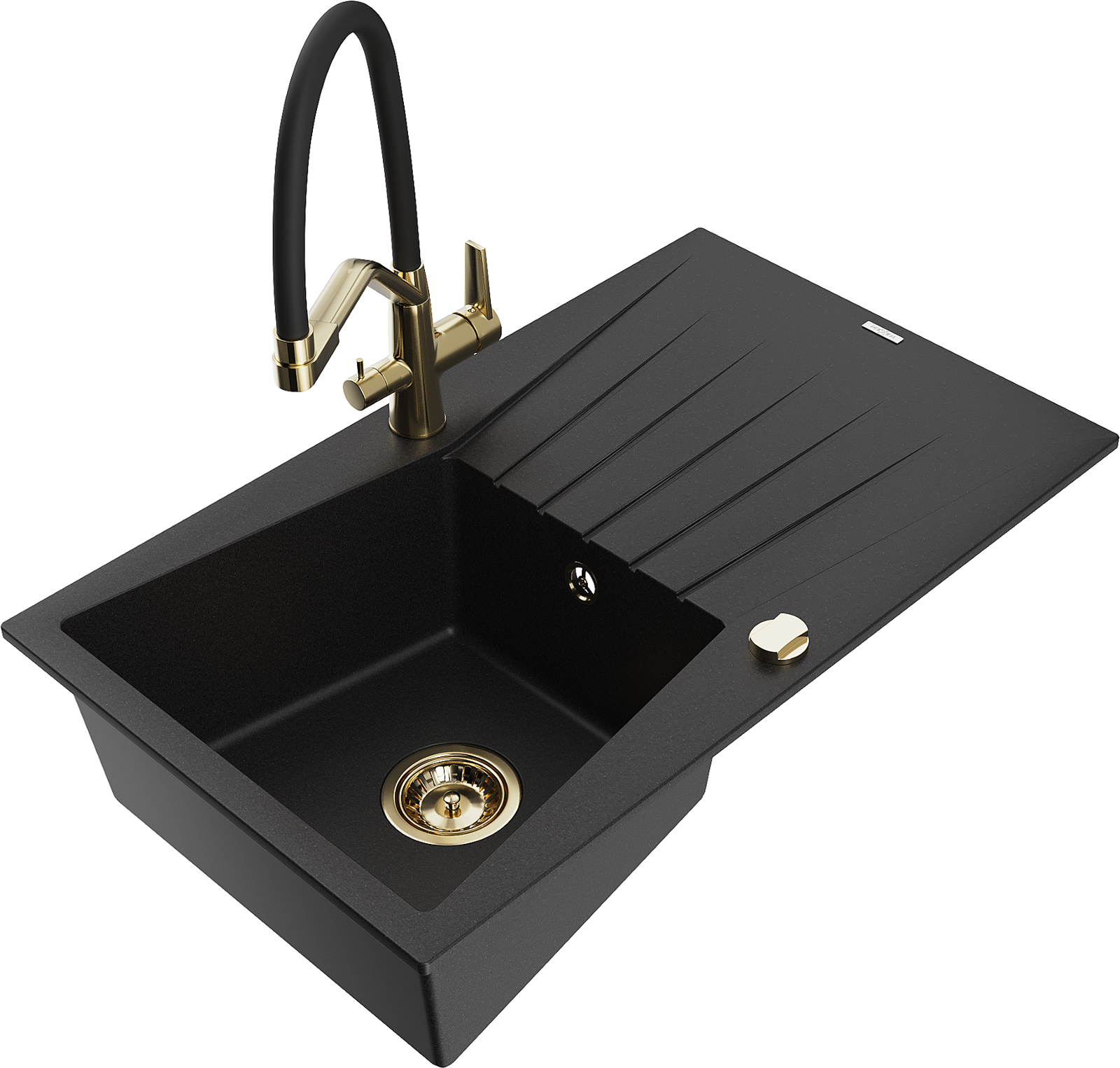 Mexen Cesar lava-loiça de granito com 1 cuba com escorredor e misturadora Duo, preto - 6514-77-671701-57-G