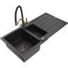 Mexen Andres lava-louça de granito com 1,5 cubas com escorredor e bateria de cozinha Duo, preto salpicado - 6515-76-671701-57-B