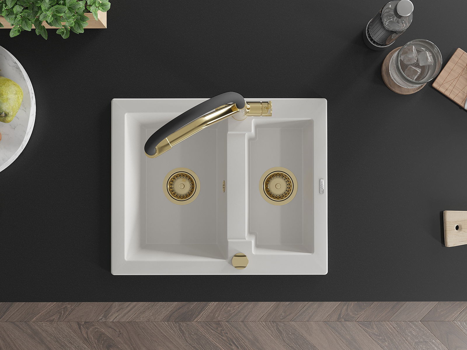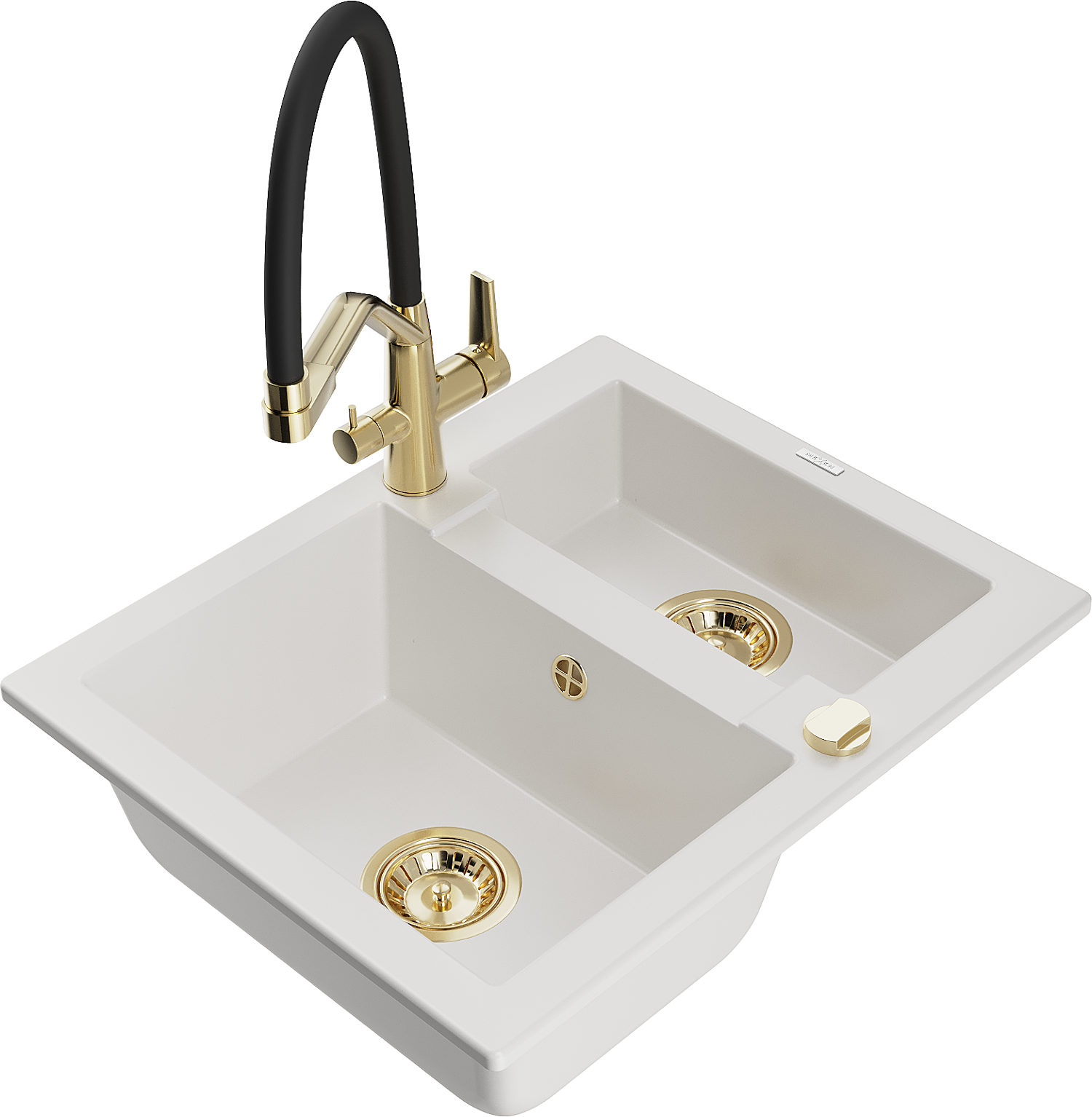 Mexen Carlos lava-loiça de granito com 1,5 compartimentos com torneira de cozinha Duo, branco - 6518-20-671701-57-G