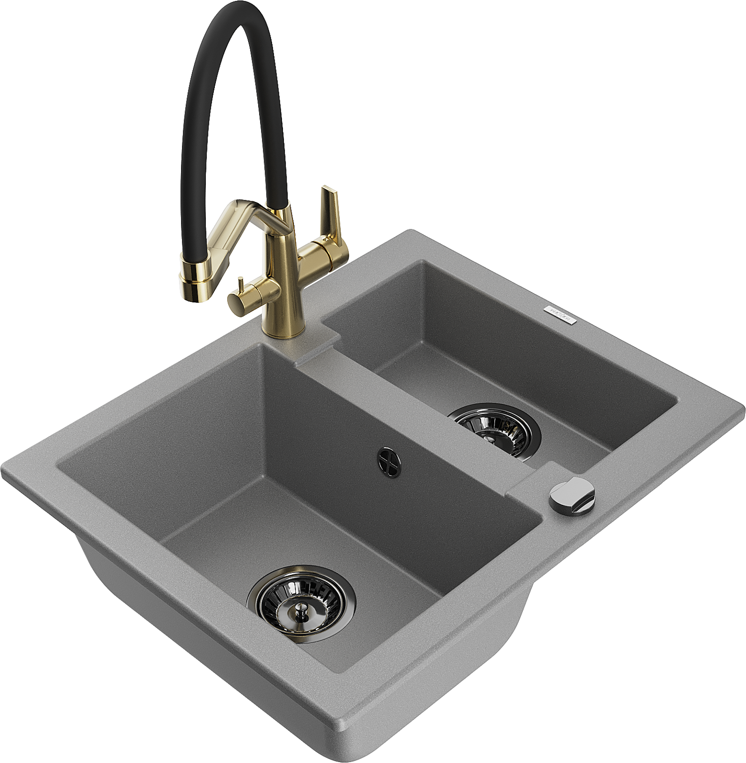 Mexen Carlos lava-loiça de granito de 1,5 cuba com torneira de cozinha Duo, cinza - 6518-71-671701-57-B