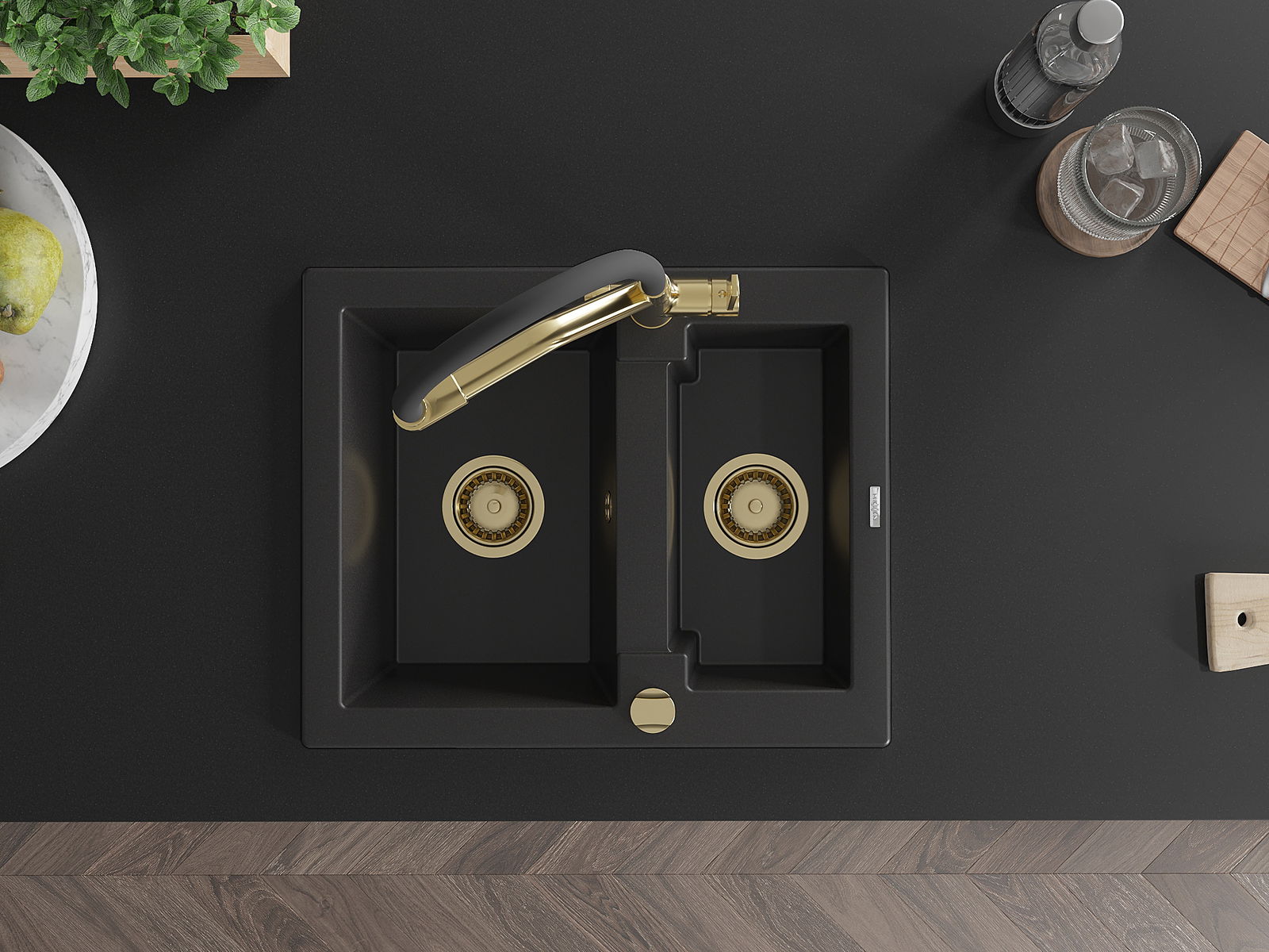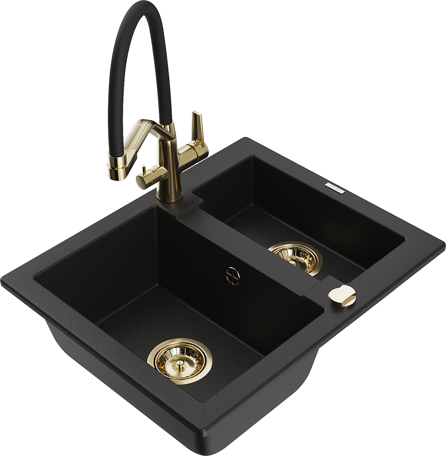 Mexen Carlos lava-loiça de granito 1,5-combo com torneira de cozinha Duo, preto - 6518-77-671701-57-G