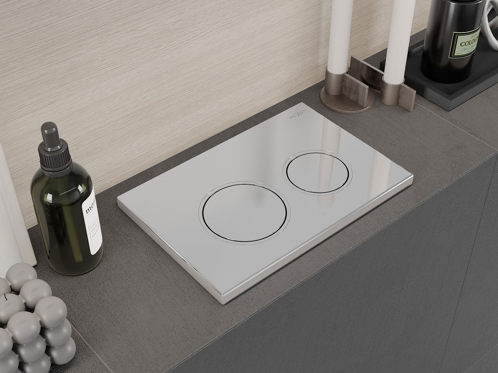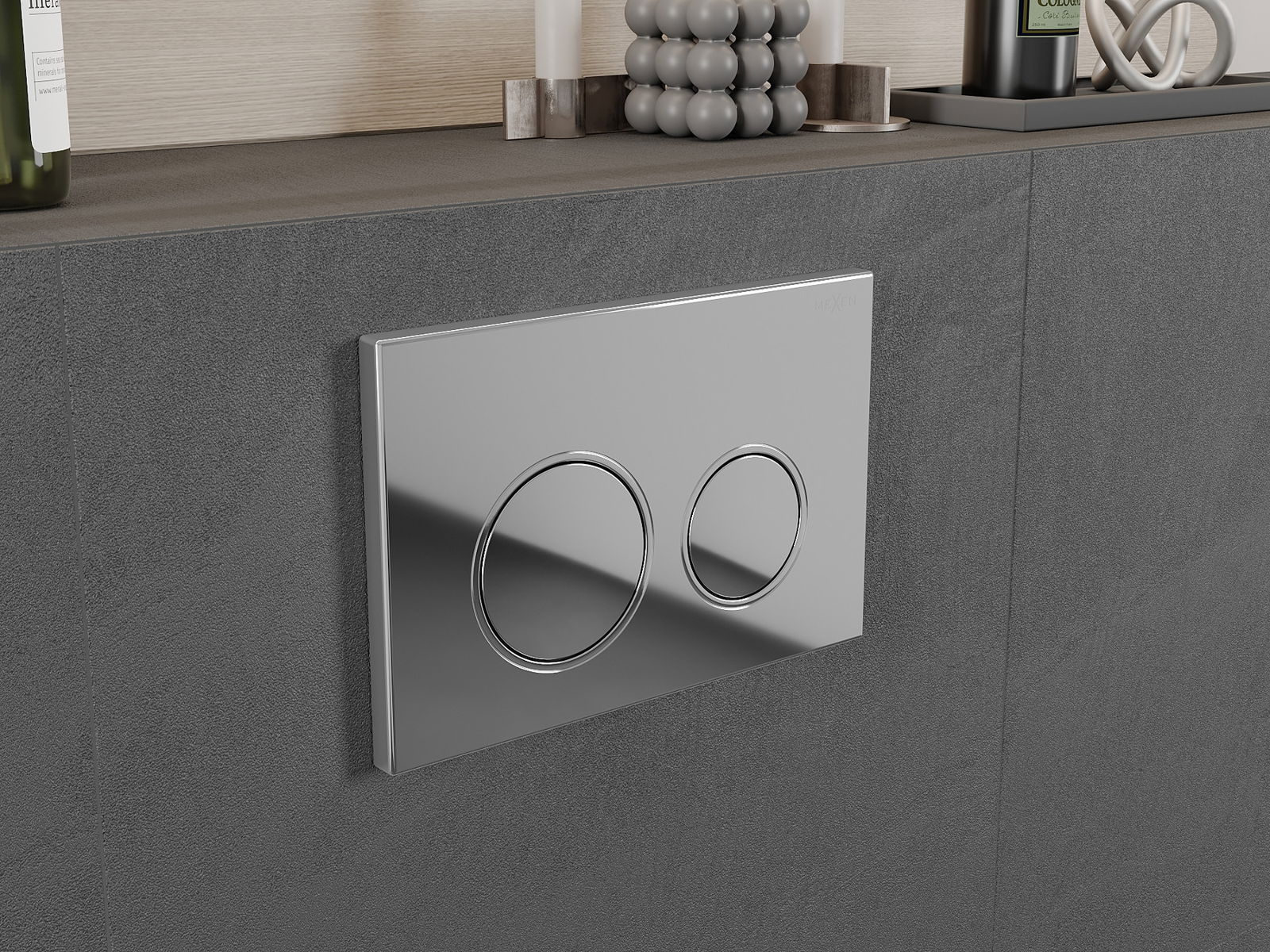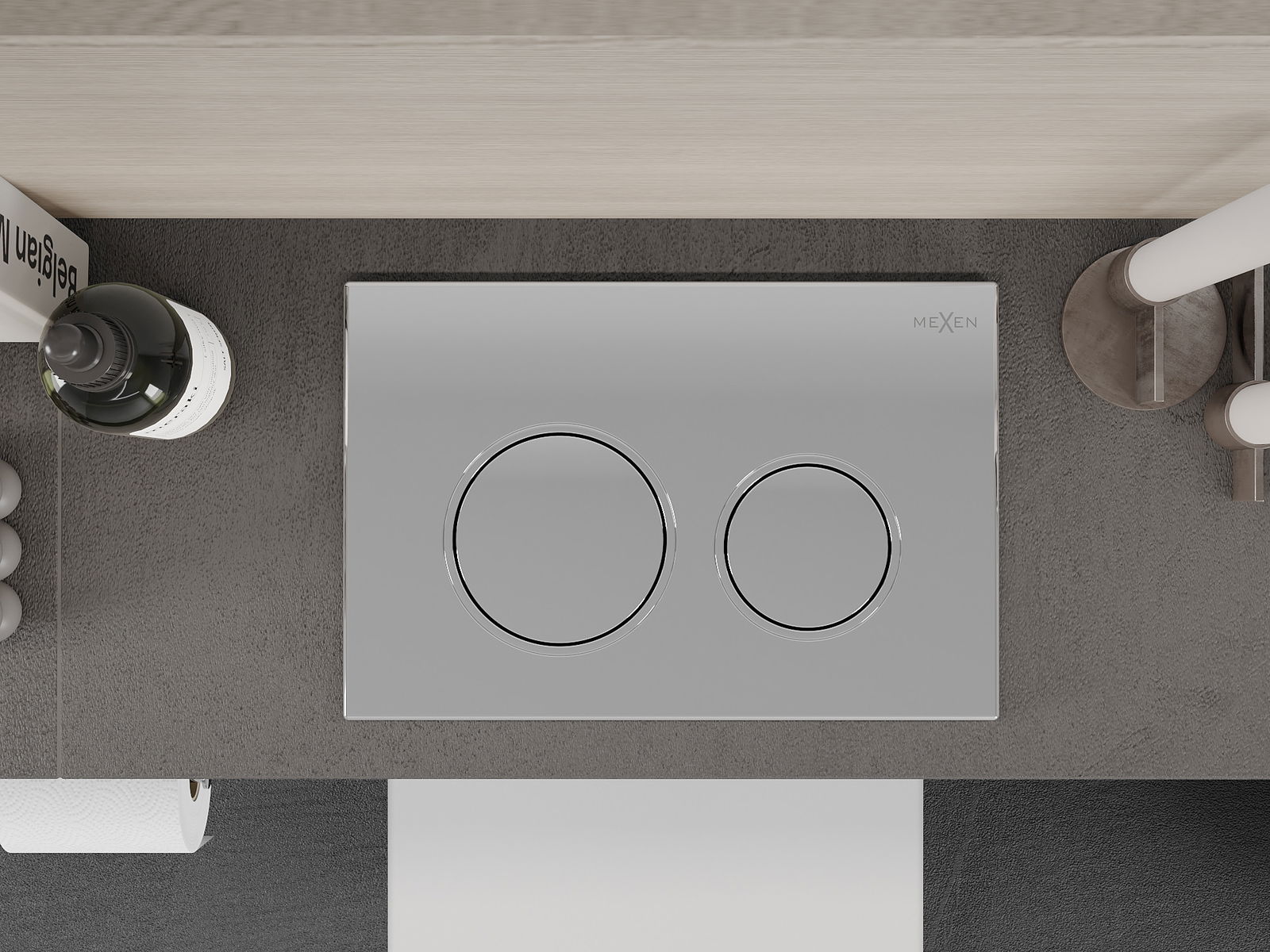 O botão é destinado a armações Mexen da série XS. Pode ser montado tanto na parte frontal como na parte superior da armação, o que aumenta a sua versatilidade. Esta solução facilita a instalação em diferentes condições de montagem. Graças a isso, o manuseio da descarga é conveniente e intuitivo.
