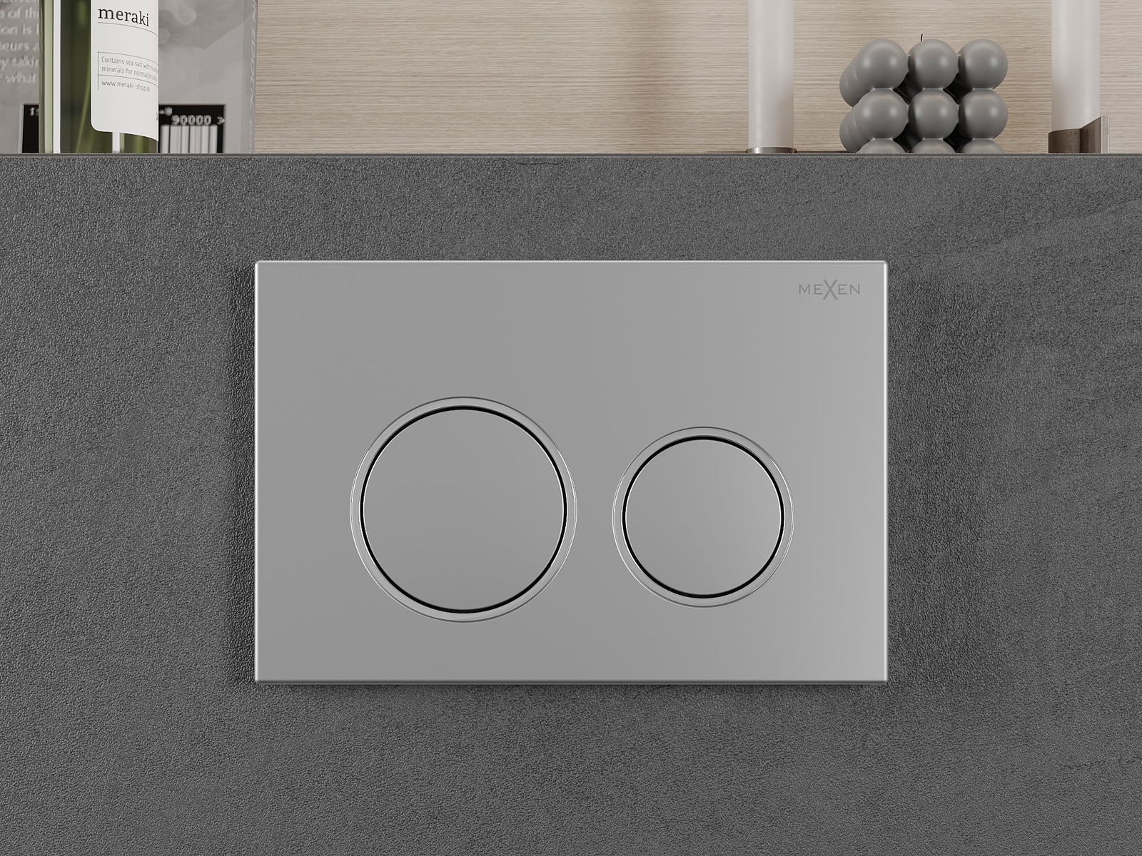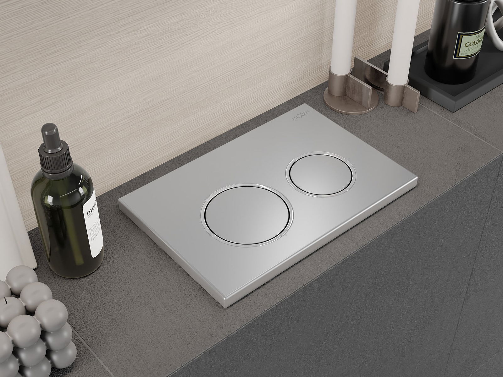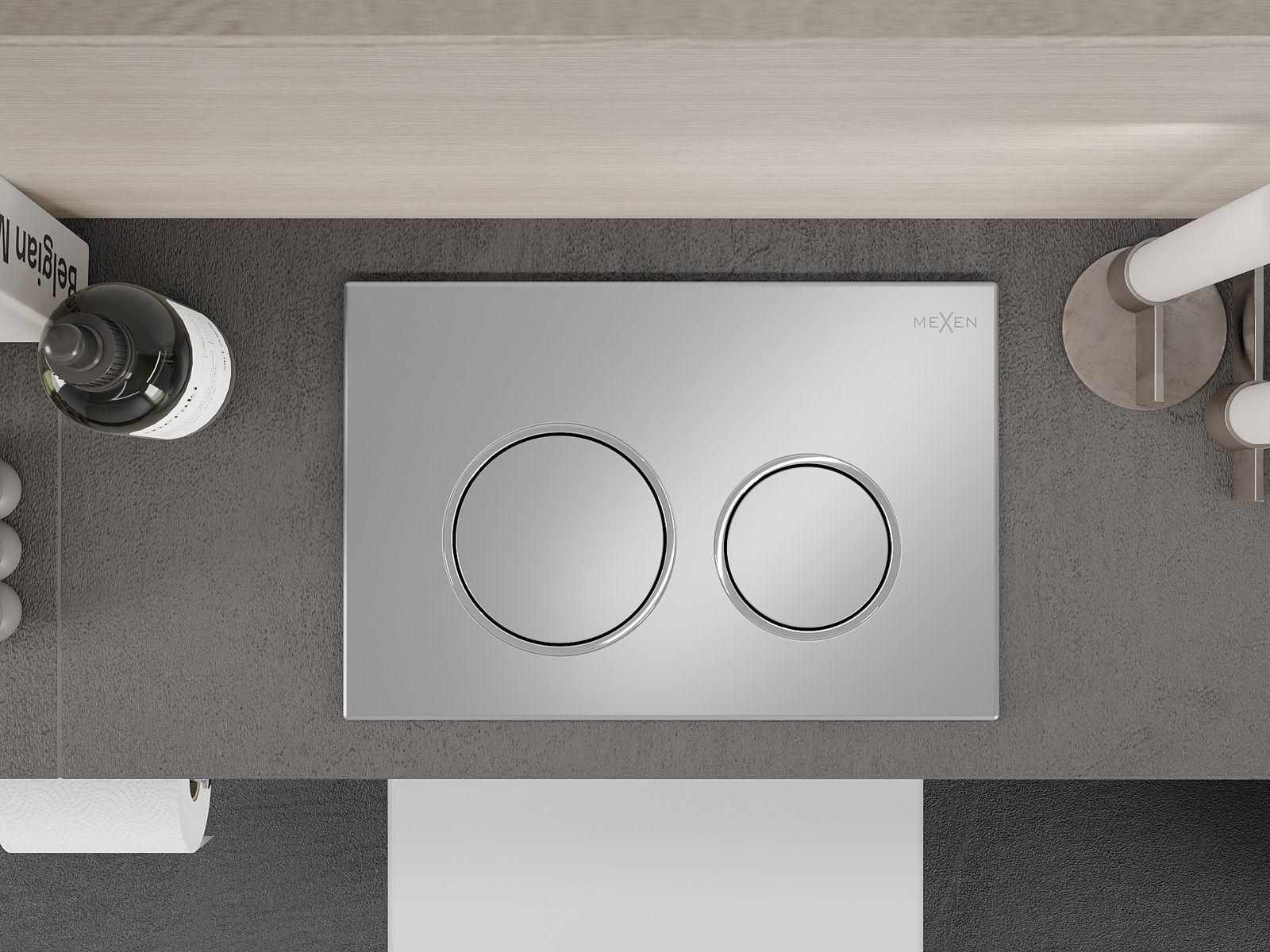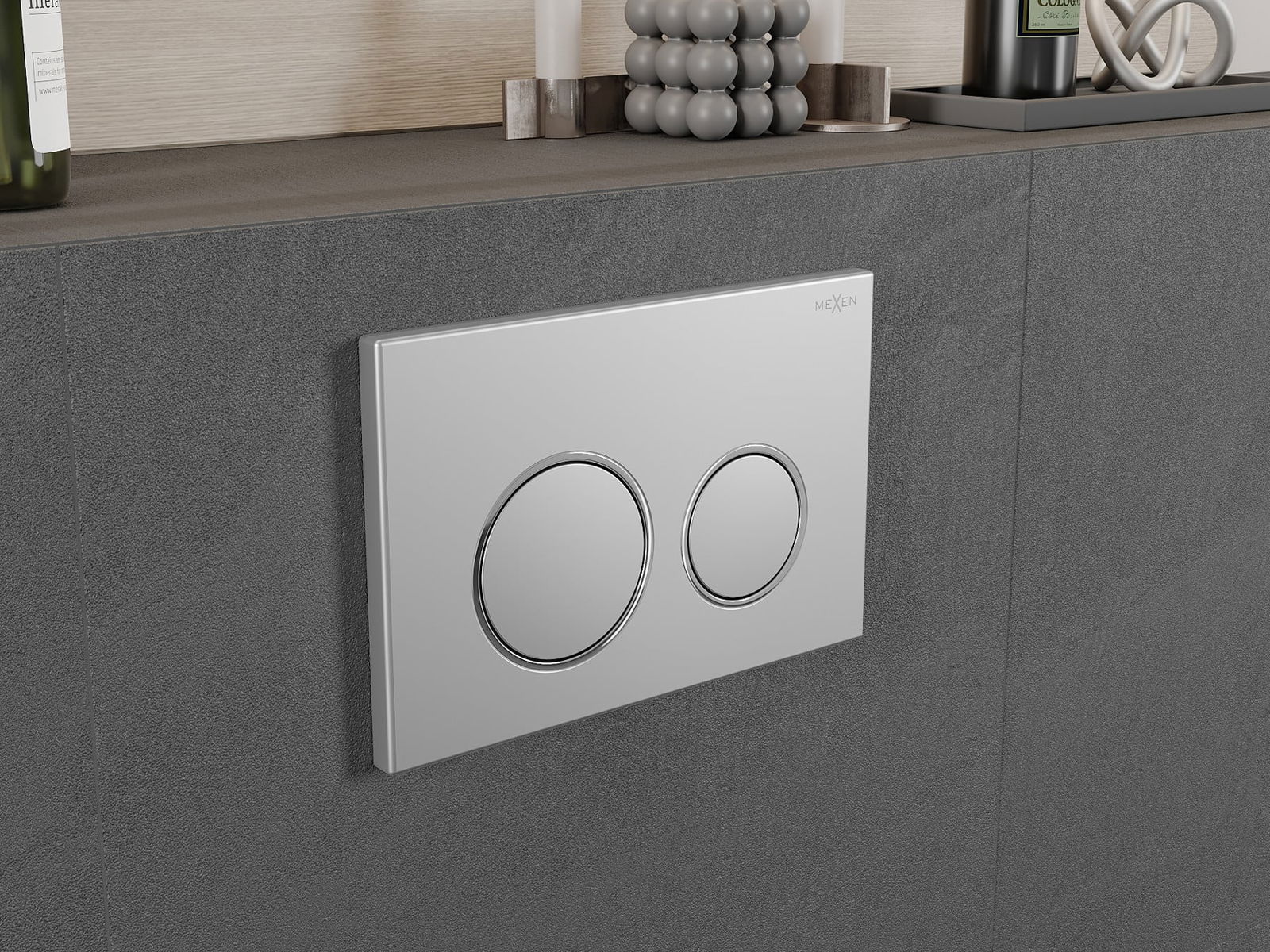 O botão é destinado a armações Mexen da série XS. Pode ser montado tanto na parte frontal como na parte superior da armação, o que aumenta a sua versatilidade. Esta solução facilita a instalação em diferentes condições de montagem. Graças a isso, o manuseio da descarga é conveniente e intuitivo.