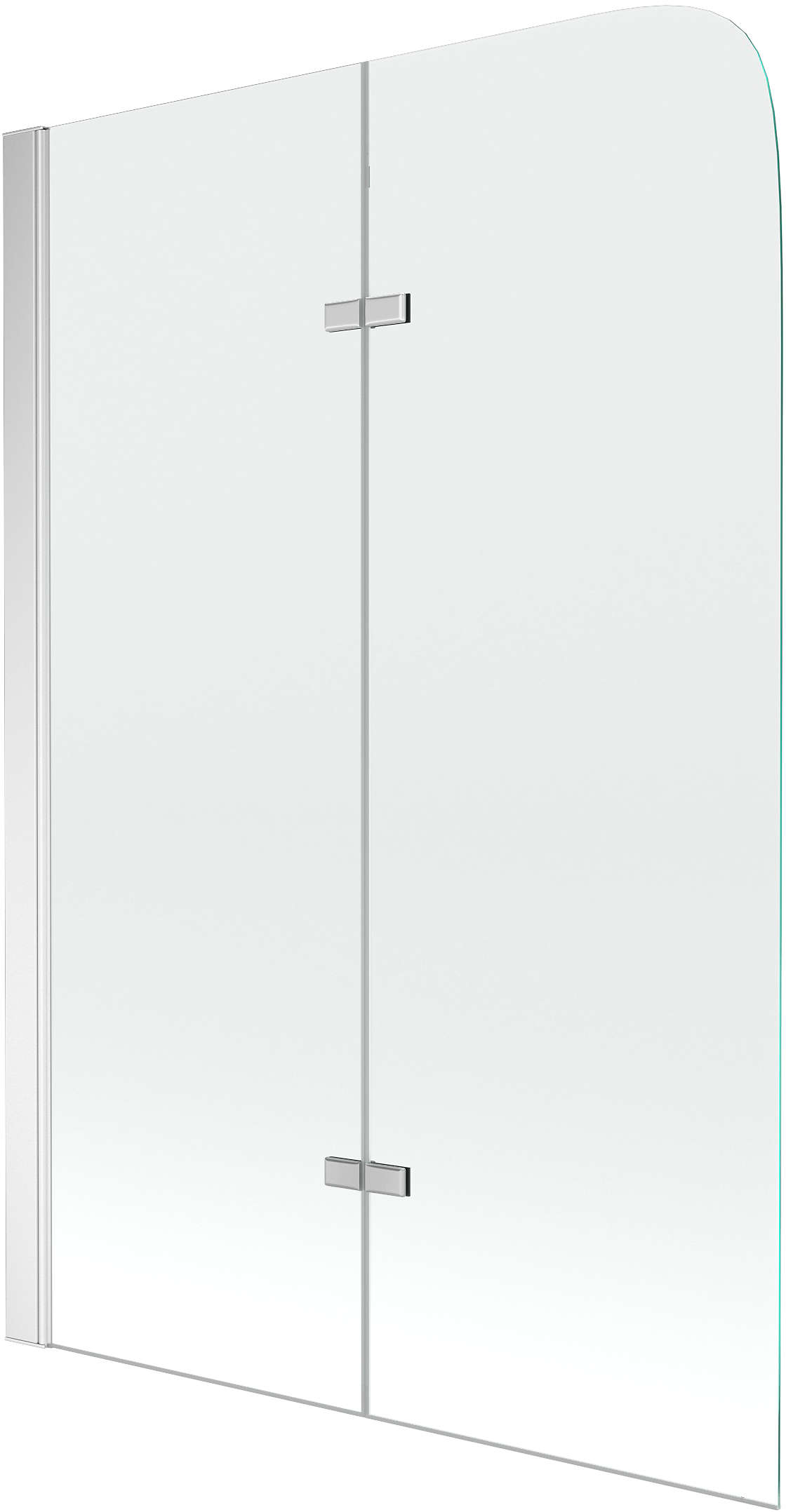 Écrã feito de duas portas com possibilidade de dobrar. Esta solução permite economizar mais espaço na casa de banho e permite o uso livre do espaço restante quando não estamos a usar a área de banho.