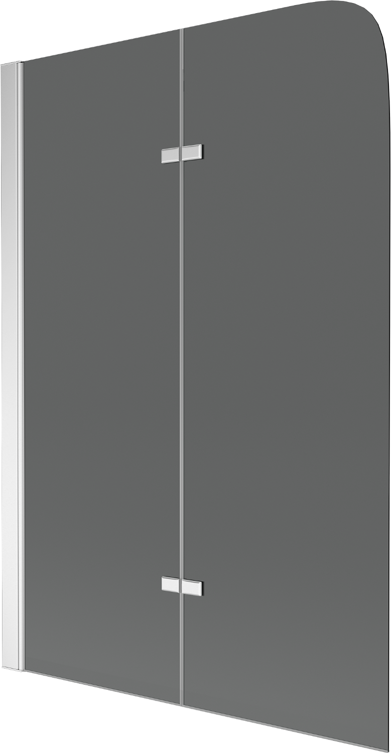 Écrã feito de duas portas com possibilidade de dobrar. Esta solução permite economizar mais espaço na casa de banho e permite o uso livre do espaço restante quando não estamos a usar a área de banho.