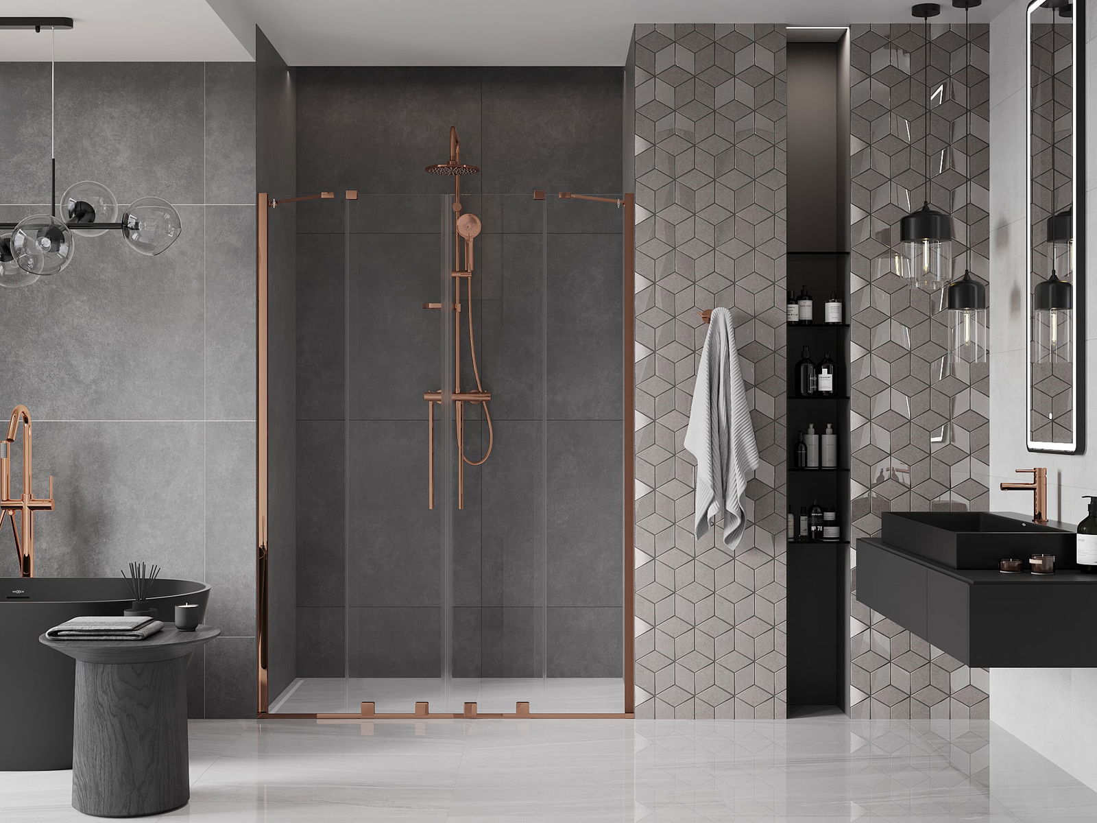Mexen Velar Duo portas de duche de correr 160 cm, transparente, ouro rosa - 871-160-000-02-60
