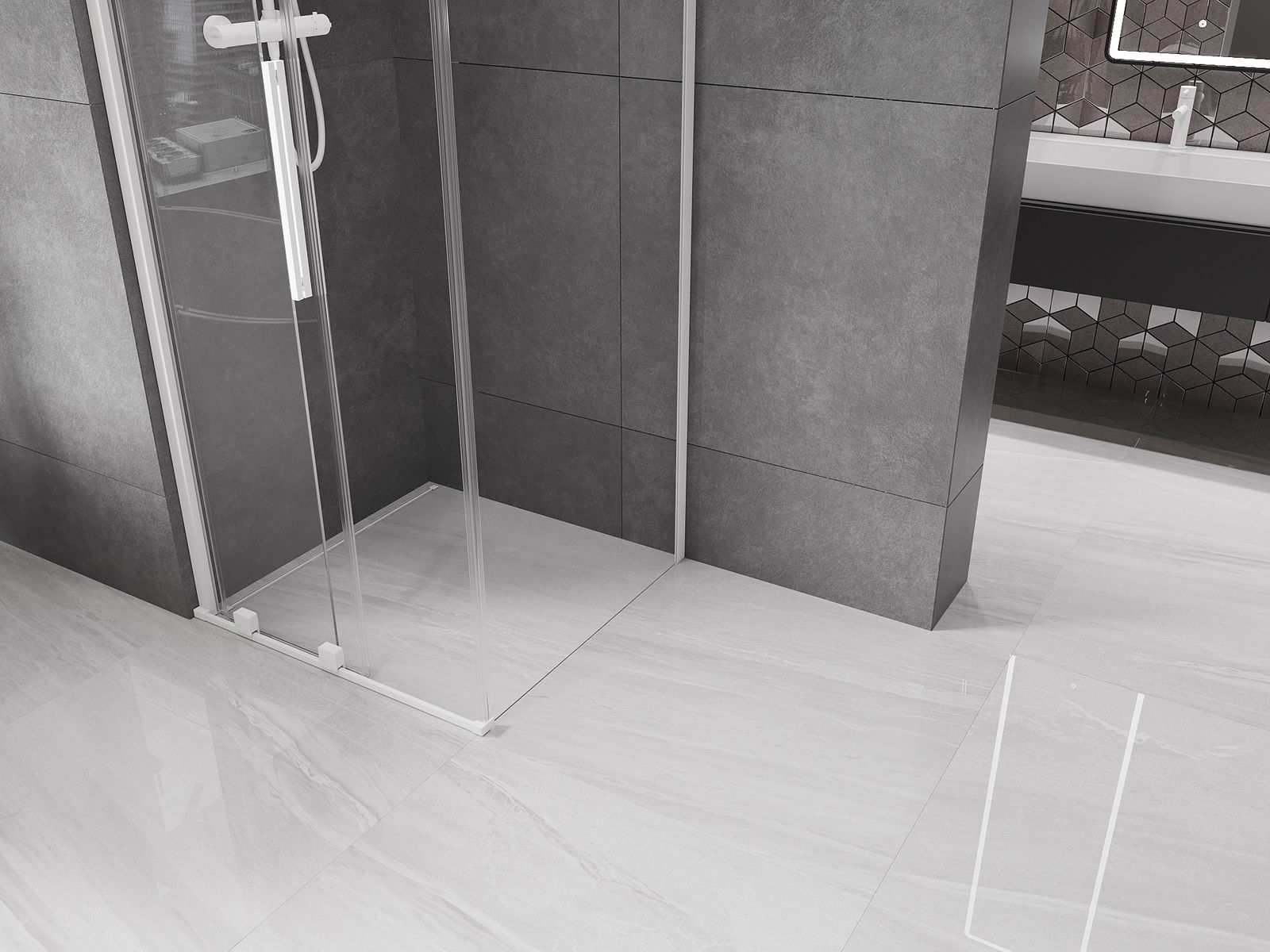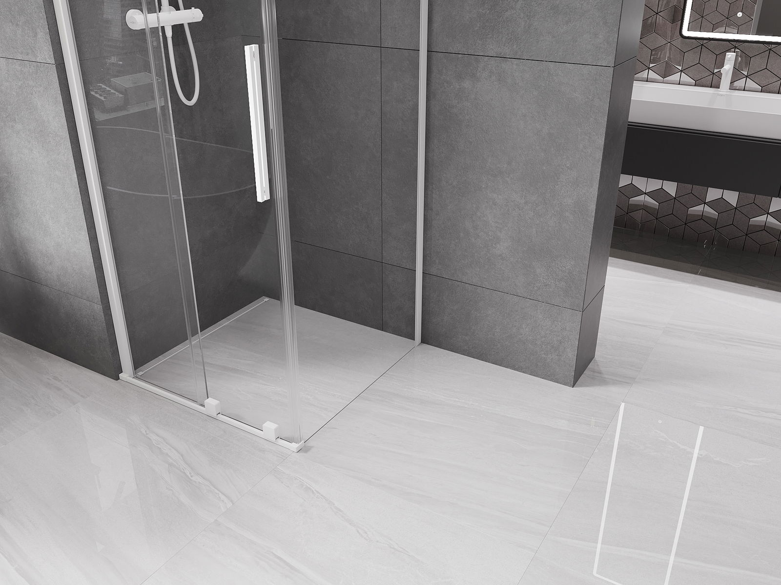 Pega prática e confortável feita de aço inoxidável. A forma moderna, combinada com o acabamento adaptado à cor dos perfis, dá ao conjunto uma aparência moderna e estilosa, realçando a estética de qualquer casa de banho.