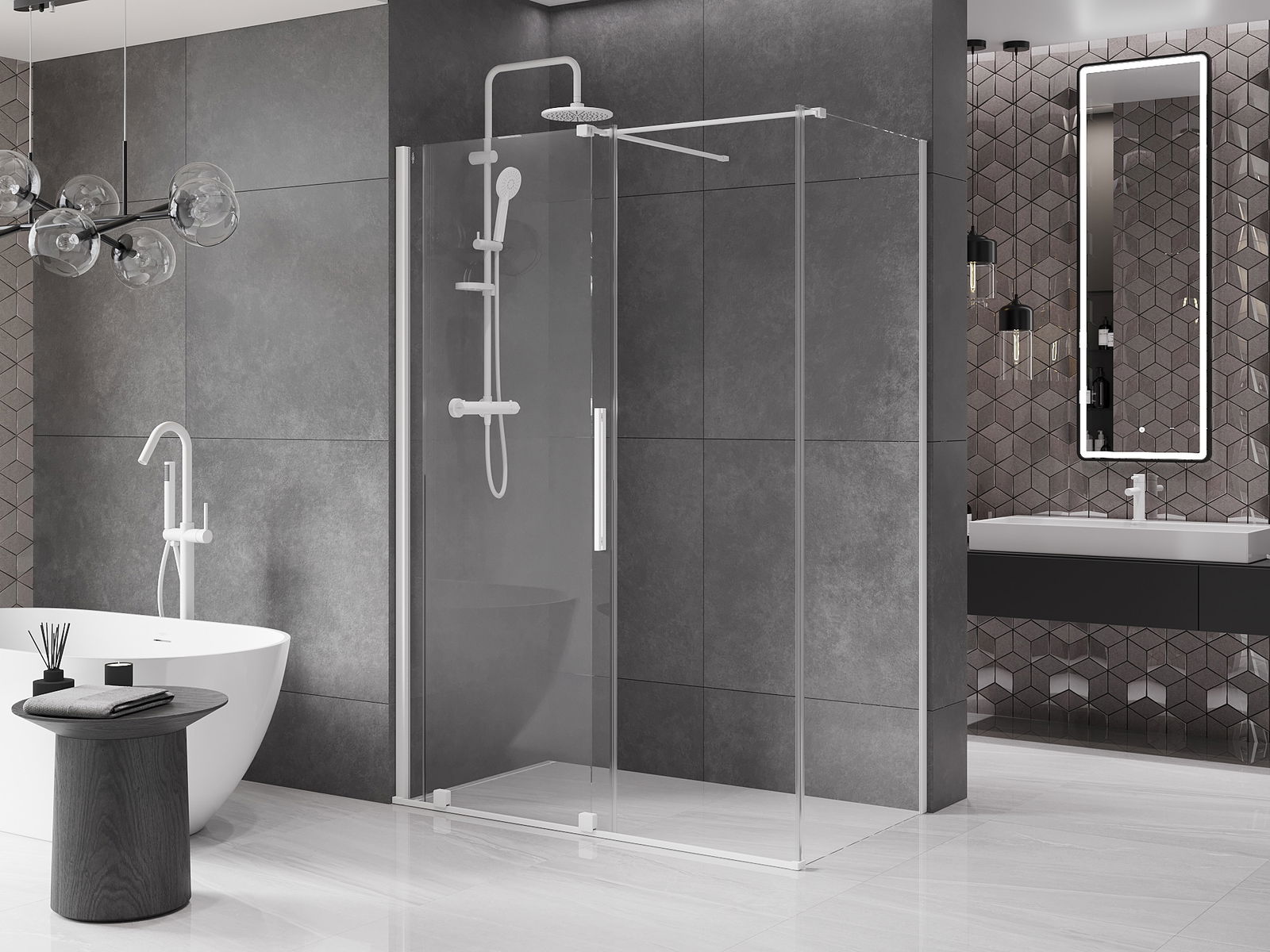 Pega prática e confortável feita de aço inoxidável. A forma moderna, combinada com o acabamento adaptado à cor dos perfis, dá ao conjunto uma aparência moderna e estilosa, realçando a estética de qualquer casa de banho.