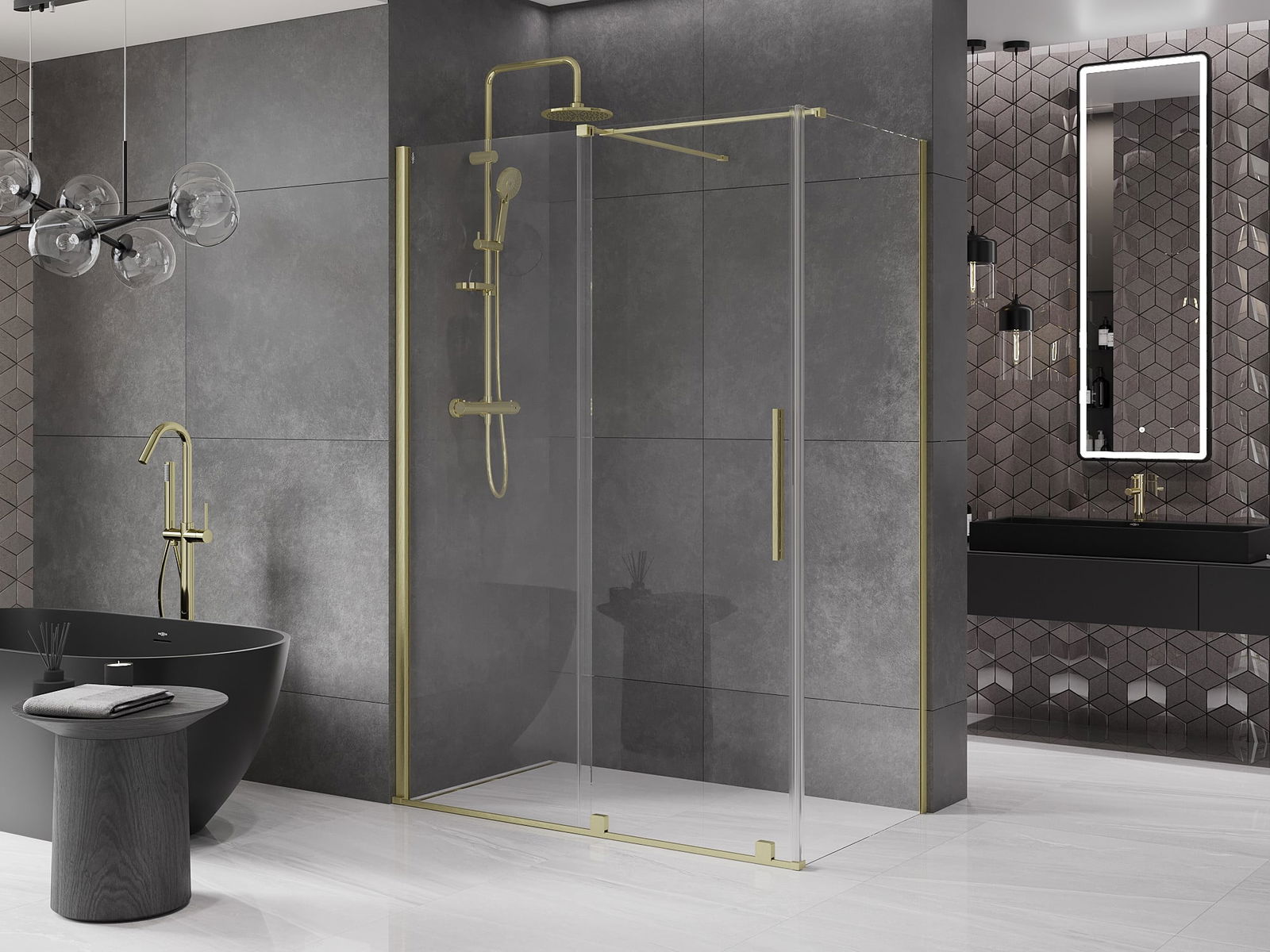 Mexen Velar cabine de duche deslizante 160 x 90 cm, transparente, ouro escovado - 871-160-090-01-55