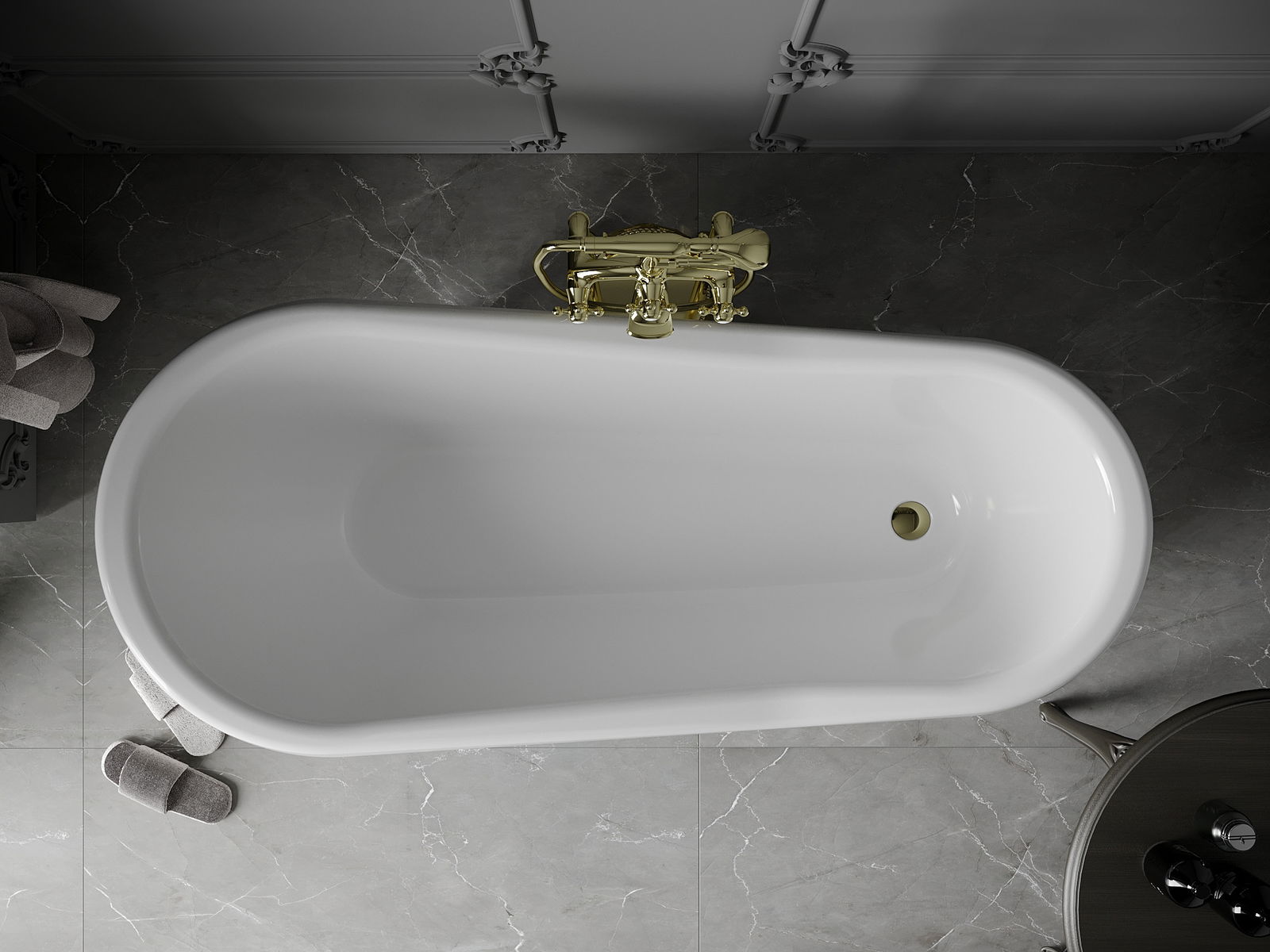 Inclui-se um sifão com uma tampa klik-klak, o que permite abrir e fechar rapidamente a válvula de drenagem na banheira. Esqueça-se de procurar a tampa antes do banho! Basta um clique para parar ou drenar a água.