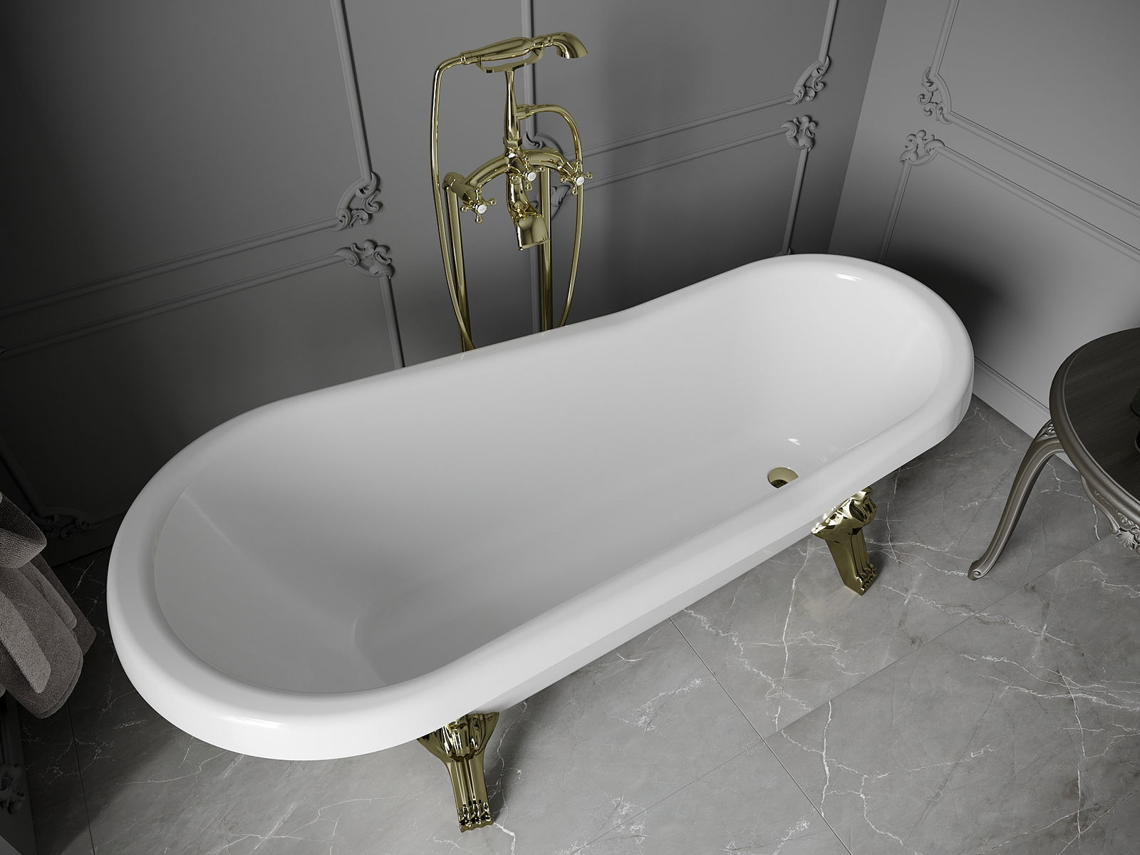 A banheira está equipada com pernas ajustáveis, que permitem nivelar a banheira mesmo em superfícies irregulares. Solução prática que assegura maior estabilidade e segurança durante o uso, além de facilitar a instalação.
