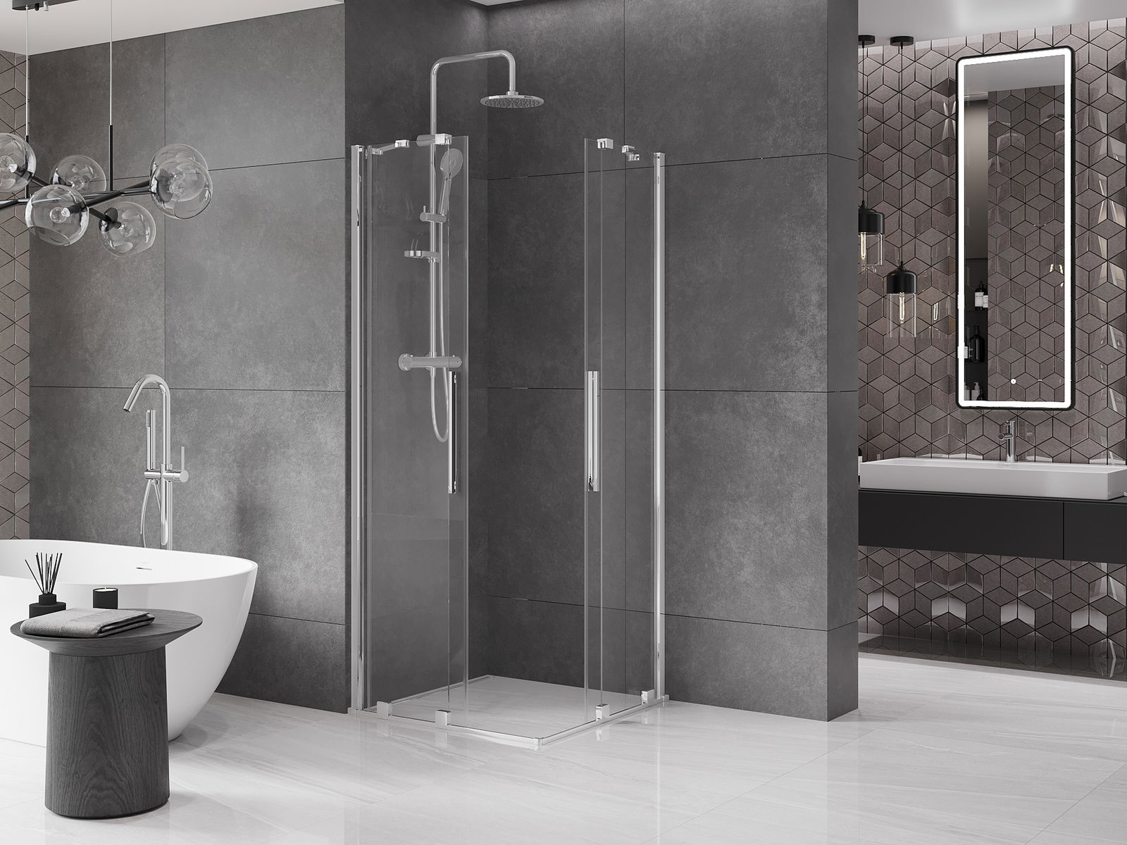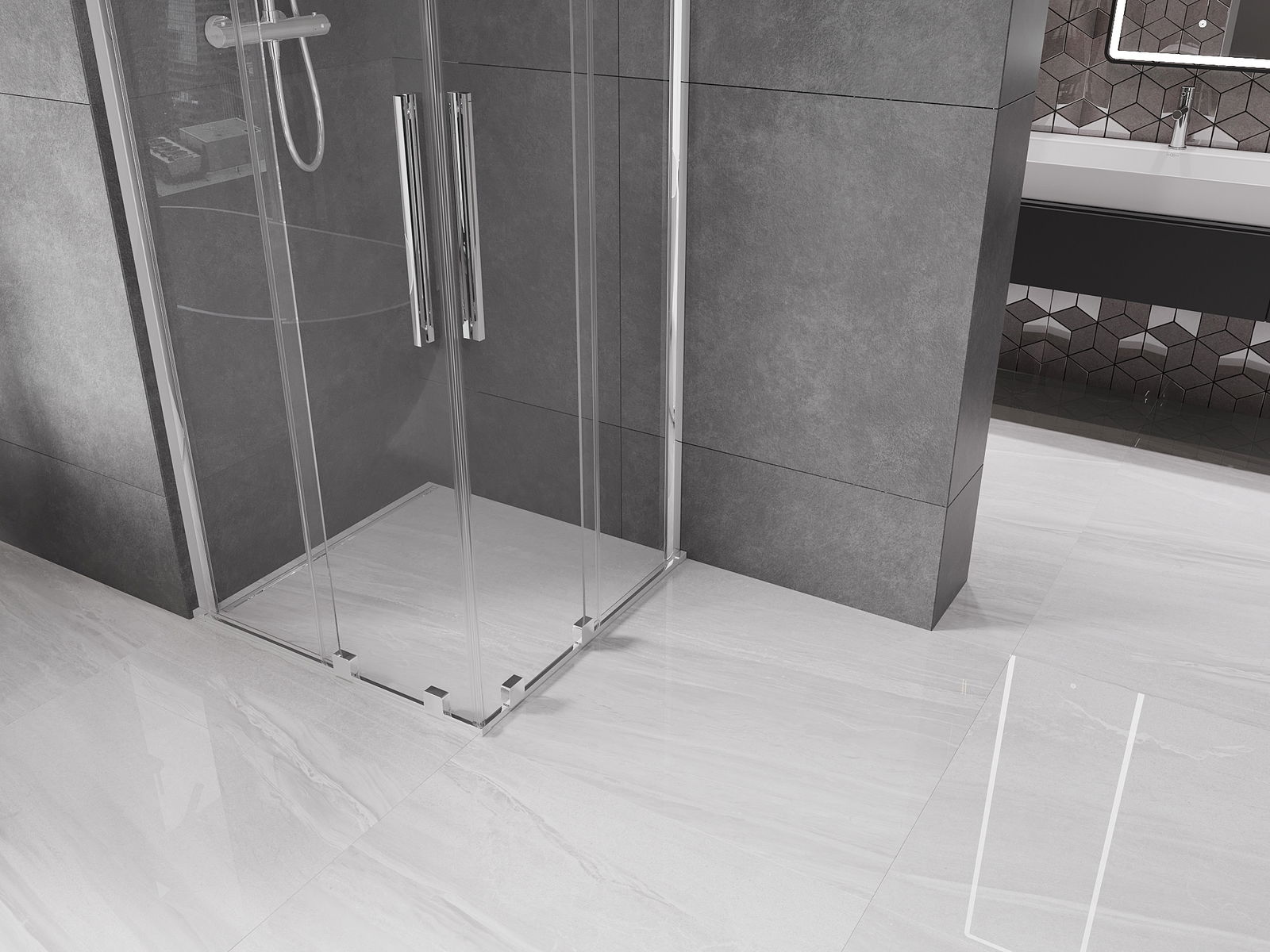 Pega prática e confortável feita de aço inoxidável. A forma moderna, combinada com o acabamento adaptado à cor dos perfis, dá ao conjunto uma aparência moderna e estilosa, realçando a estética de qualquer casa de banho.