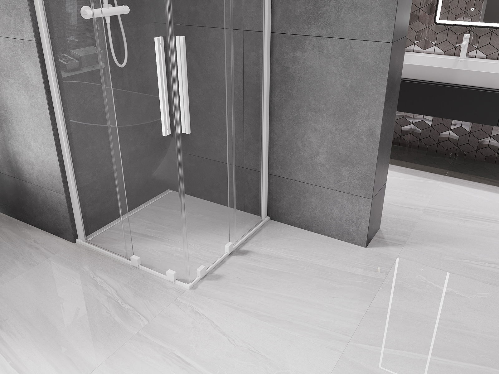 O produto, dependendo das necessidades, pode ser montado tanto no chuveiro como diretamente no chão. O método de montagem universal permite adaptar o produto a diferentes tipos de casas de banho e configurações de espaço.