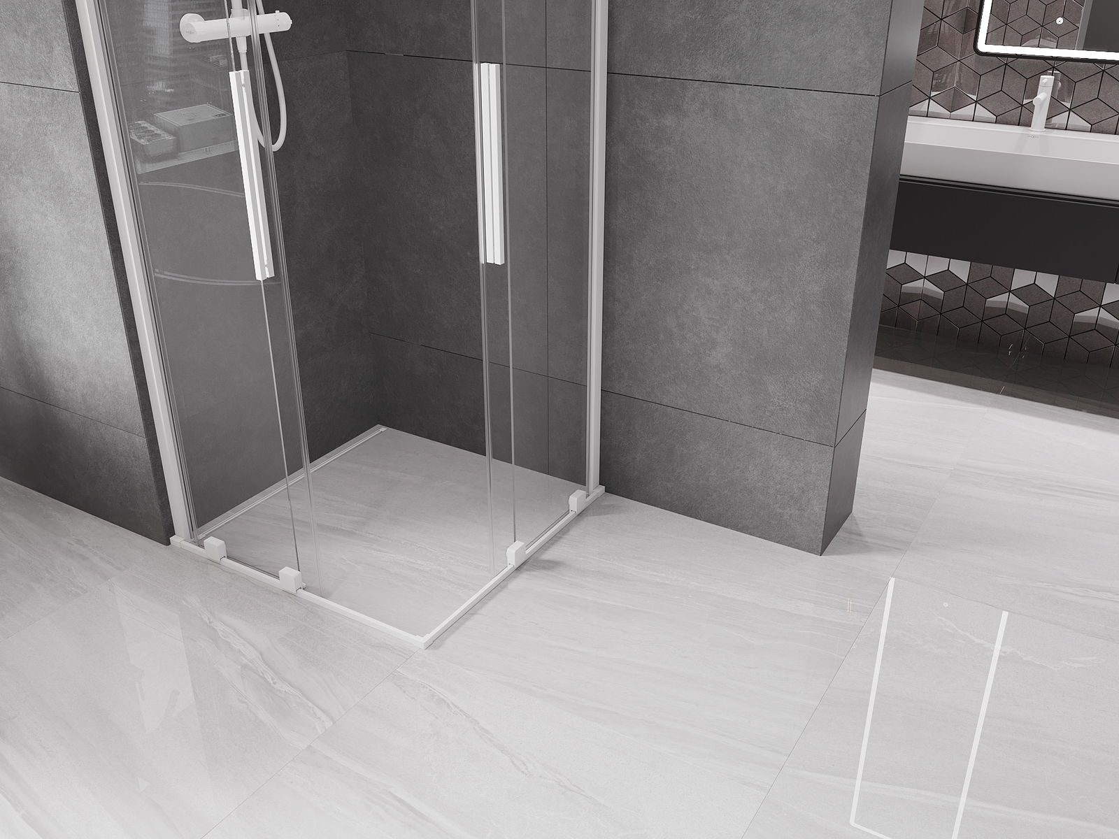 Pega prática e confortável feita de aço inoxidável. A forma moderna, combinada com o acabamento adaptado à cor dos perfis, dá ao conjunto uma aparência moderna e estilosa, realçando a estética de qualquer casa de banho.