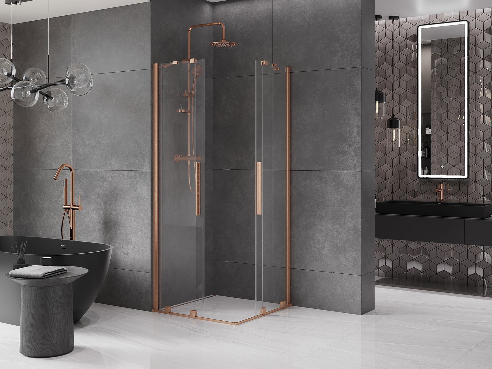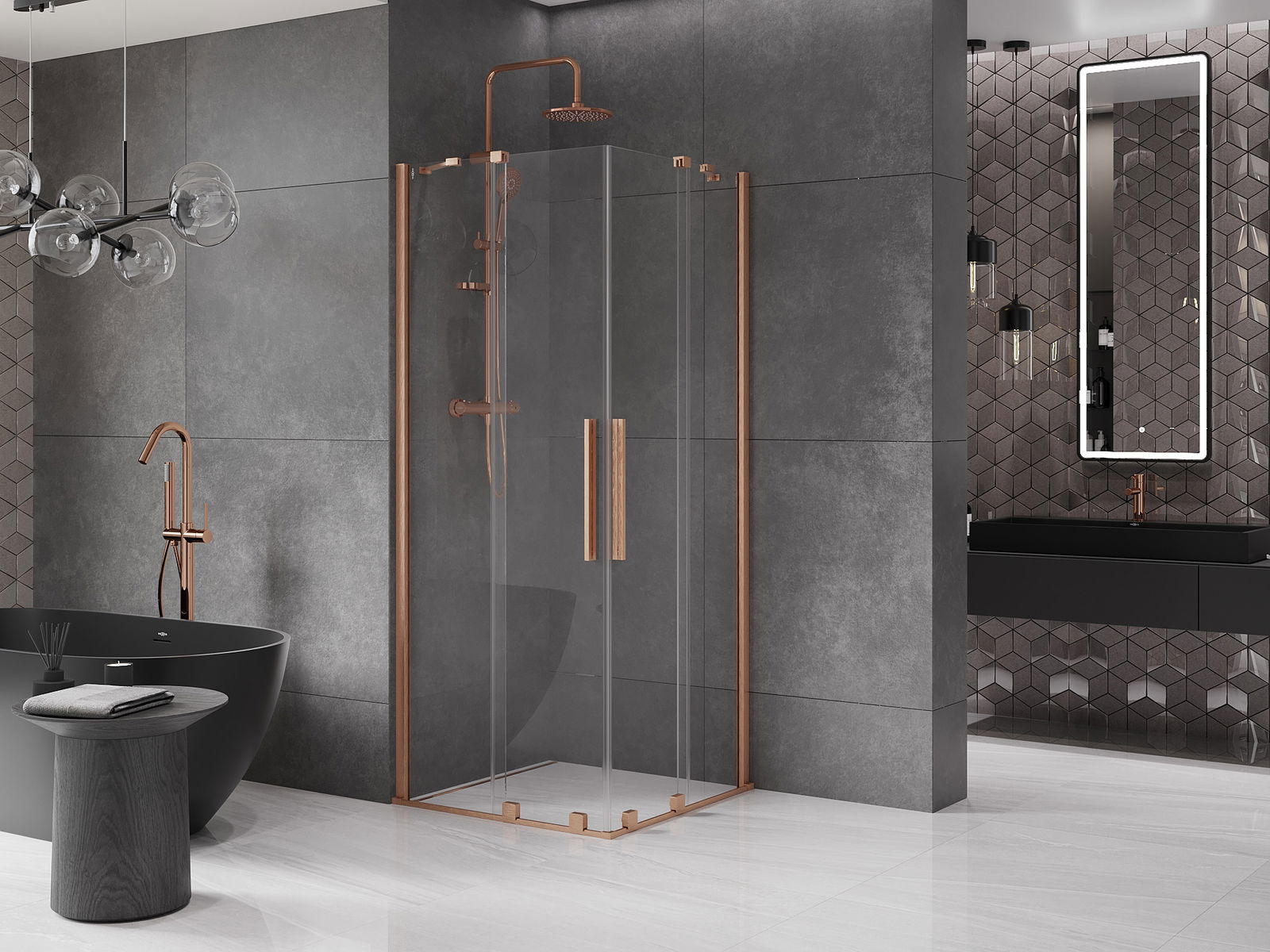 Mexen Velar Duo cabine de duche deslizante 80 x 80 cm, transparente, cobre escovado - 871-080-080-02-65