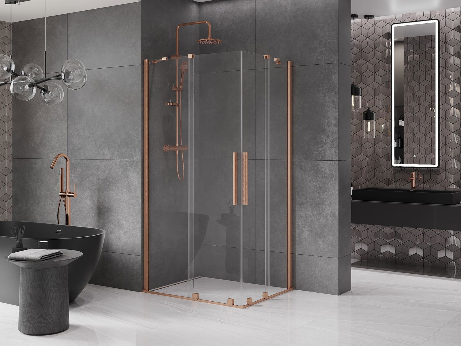 Mexen Velar Duo cabine de duche deslizante 100 x 90 cm, transparente, cobre escovado - 871-100-090-02-65